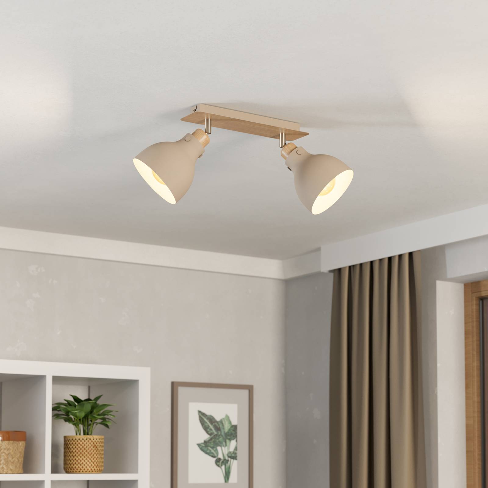 EGLO Stropní světlo Arrecife písková/dřevo, 2 zdroje