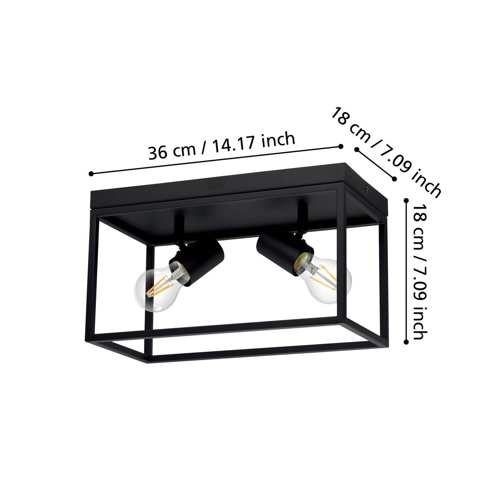 Černé ocelové stropní světlo Silentina Stropní svítidlo Silentina má moderní geometrický design. Otevřený černý ocelový kryt ve tvaru krychle poskytuje optimální osvětlení prostřednictvím dvou zásuvek. Díky barevné neutralitě lze dvouplamenné svítidlo snadno začlenit do různých stylů interiéru. Svítidlo se montuje přímo na strop. Obě patice svítidla směřují do různých směrů, takže je možné individuální nastavení světla. Místnost tak může být mimořádně dobře osvětlena. Lze je však použít i k vytvoření světelných ohnisek a zvýraznění jednotlivých částí interiéru.