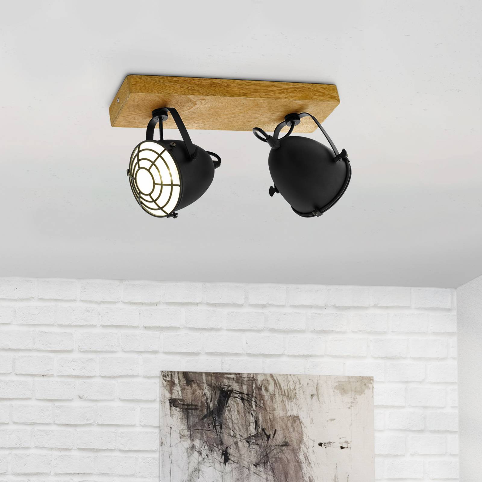 EGLO Stropní bodové svítidlo Gatebeck, dřevo/černá, 2 světla, dřevo