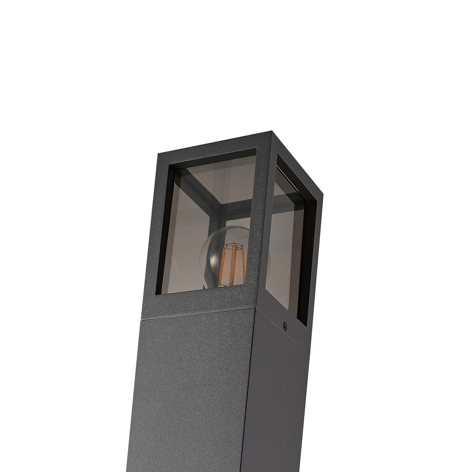 Osvětlení cesty Facado II ve tvaru krychle v tmavě šedé metalíze s kouřově šedým krytem Facado II je moderní osvětlení cesty, které osvětluje venkovní prostor ze všech stran. Hliníkový kryt má vysoký krychlový tvar a tmavě šedou metalickou povrchovou úpravu. Světlo ze žárovky E27 vyzařuje do všech stran přes kouřově šedý tónovaný polykarbonátový kryt - IP kód: IP65