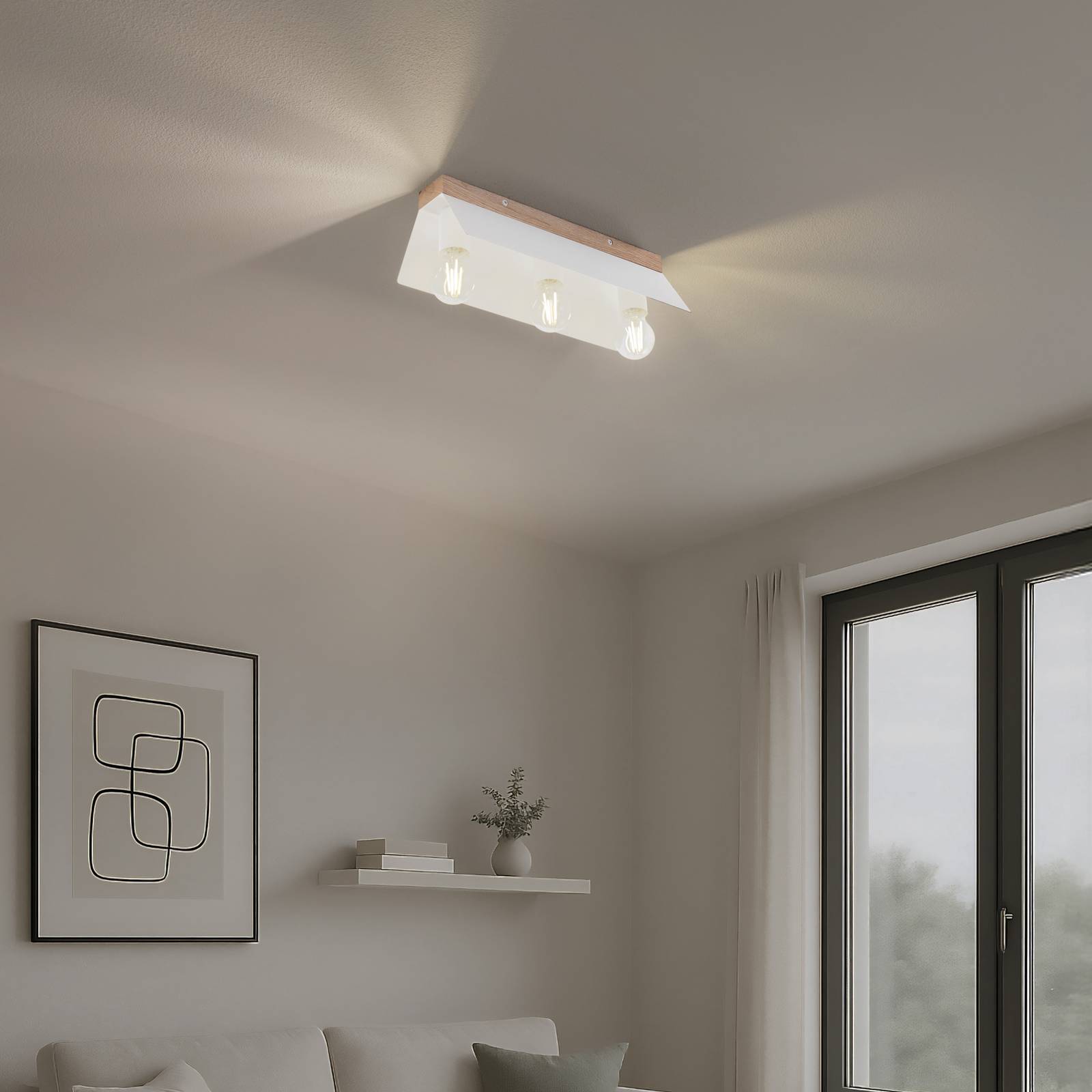 Lamkur Lighting Stropní svítidlo Esme, bílé, délka 40 cm, kov/dřevo, 3 světla