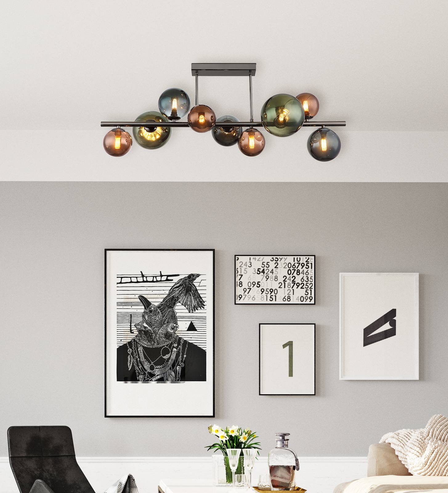 Stropní světlo Riha pro harmonickou atmosféru – 9 žárovek Stropní světlo Riha kombinuje stylový design s funkčním osvětlením a je ideální do obývacího pokoje a jídelny. Je vyrobeno ze skla a kovu, dodává elegantní akcenty a dokonale zapadá do různých stylů interiéru. Devítilampová konstrukce zajišťuje rovnoměrné osvětlení a vytváří příjemnou atmosféru. Díky teplé bílé barvě světla přispívá stropní svítidlo Riha k vytvoření útulného a uvolněného prostředí. Kombinace skla a kovu dodává lampě nejen atraktivní vzhled, ale také robustní odolnost. Perfektní souhra designu a funkčnosti, která zkrášlí každou místnost. Včetně LED žárovky s paticí G9.