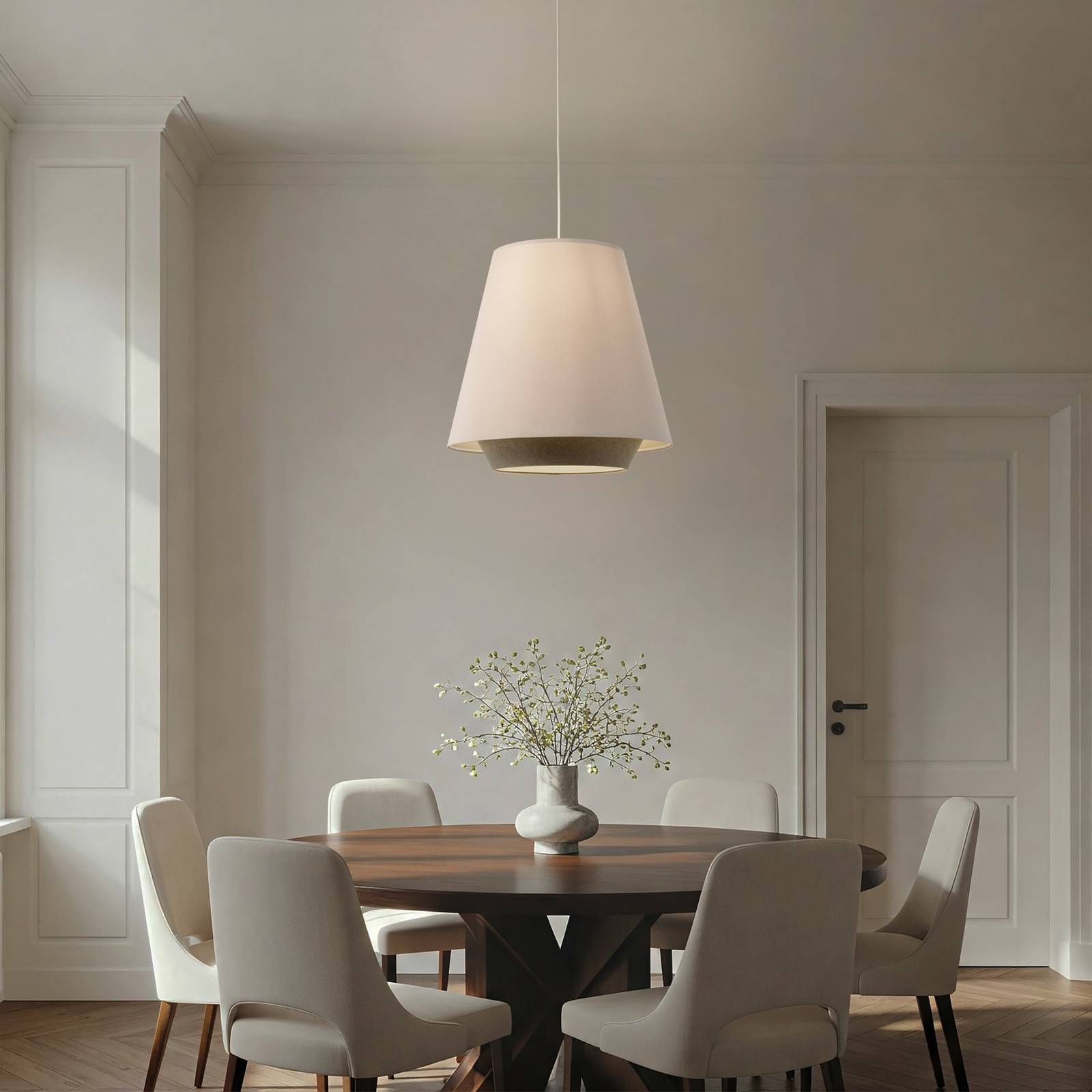 Textilní závěsné svítidlo Sensei doblo s kónickým stínidlem Objevte závěsné svítidlo Sensei doblo, které zaujme nejen svým atraktivním designem v krémové a zelené barvě, ale také svou univerzálností v různých místnostech, jako je obývací pokoj, jídelna a ložnice. Toto svítidlo vyrobené v Evropě je symbolem kvality a místního řemeslného zpracování. Přestože svítidlo Sensei doblo není vybaveno integrovaným stmívačem, lze jej snadno nastavit pomocí externího stmívače a vytvořit tak požadovanou atmosféru.