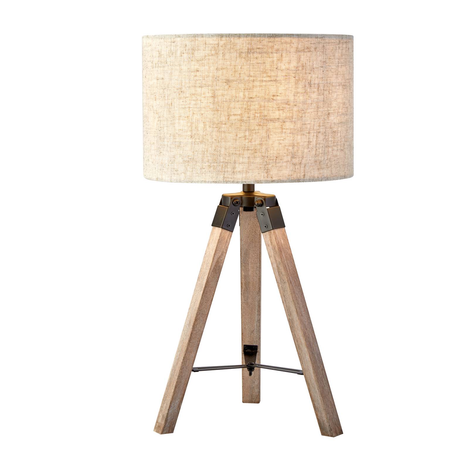 Searchlight Stolní lampa Fynriel, béžová, dřevo/textil, trojnožka, 35 cm