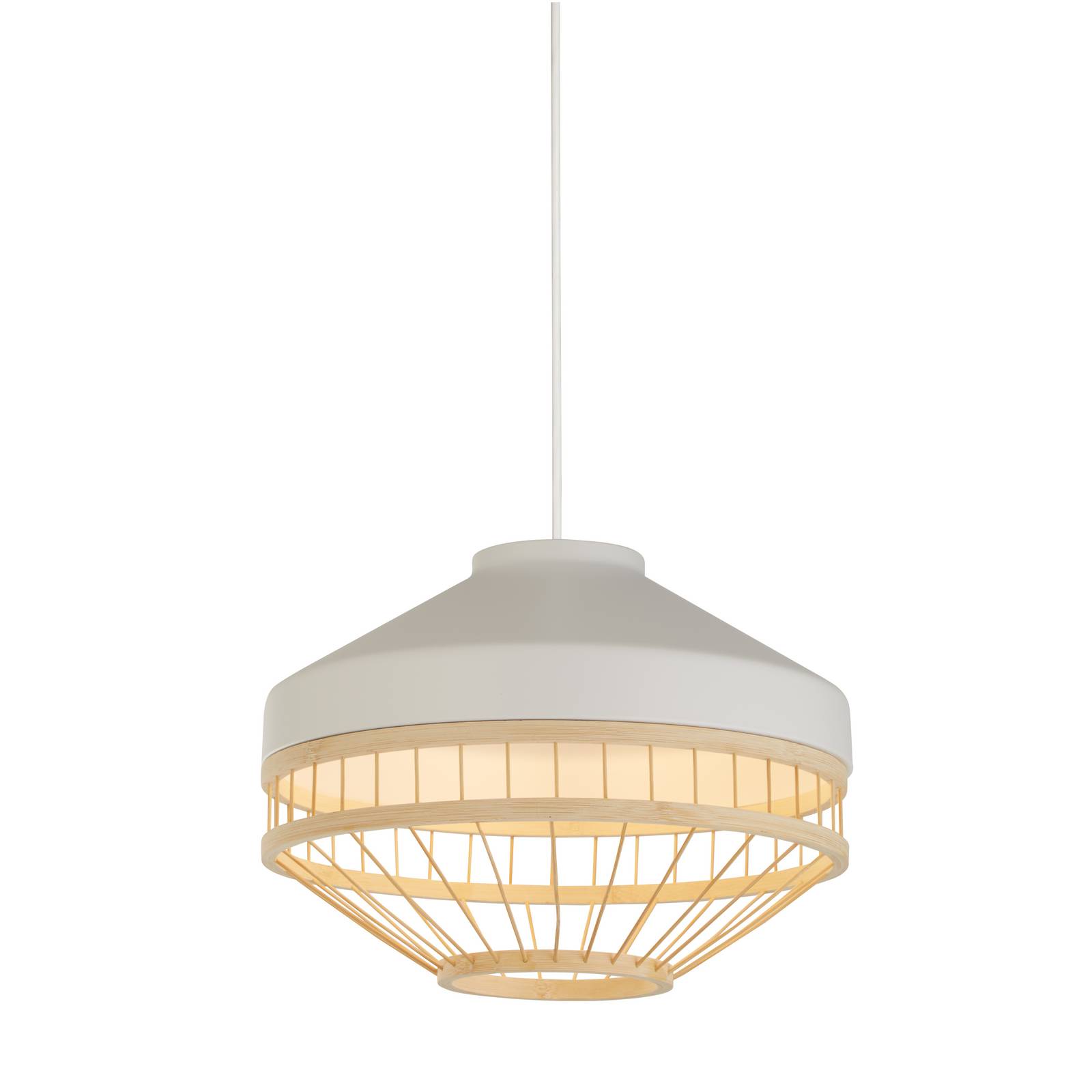 Searchlight Závěsné světlo Lanya, bílé, ocel/bambus, Ø 30 cm, E27