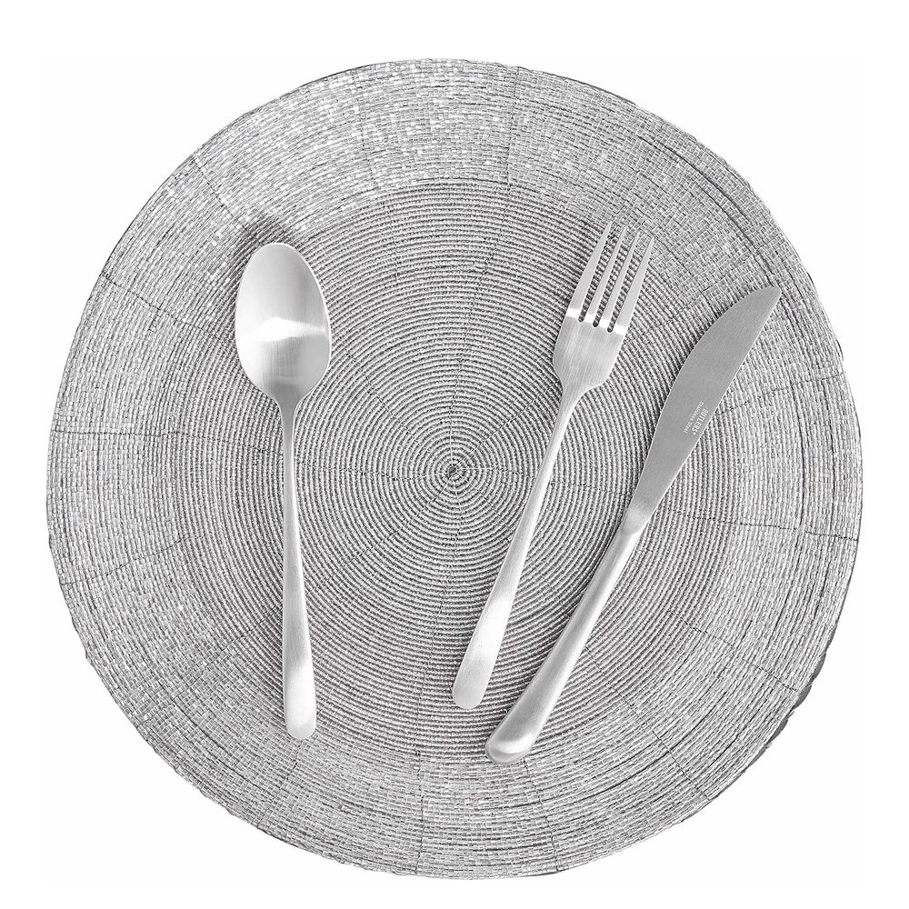 No páni! Toto kulaté prostírání SHINE ON ve stříbrném provedení má svrchní stranu pošitou spoustou maličkých šňůrek s korálky. A aby toho lesku a třpytu nebylo dost, má prostírání na okraji ještě asi 5 cm široký lem pěkně tón v tónu. Prostírání je samo o sobě krásnou dekorací decentně laděného prostřeného stolu, pokud máte rádi o něco výraznější výzdobu, lze jej kombinovat i s dalšími lesklými či barevnými elementy. K dostání v různých barvách. V nabídce také vhodné podložky pod sklenice.