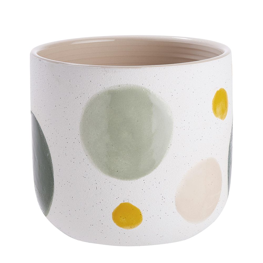 Rozměry: průměr 16,5 x V 15 cm Materiál: kamenina Retro náladě 70. let vzdává hold květináč SEVENTIES. V květináči zdobeném veselými barevnými puntíky se sukulenty, kaktusy i Vaše oblíbené pokojové rostliny budou zaručeně cítit jako doma. K dostání i v dalších velikostech.