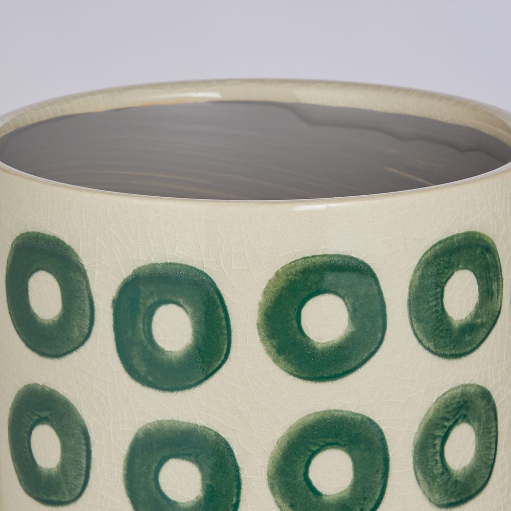 Rozměry: průměr 14 x V 12,5 cm Materiál: kamenina Žádný začátek, žádný konec: kruh je ztělesněním času a života. Tento retro květináč dodává této originální formě domácí vzhled.