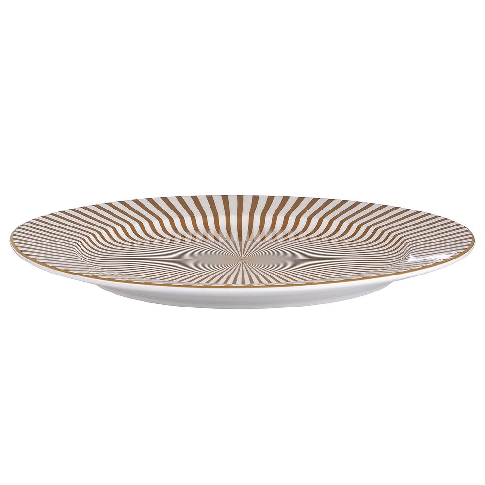 Rozměry: průměr 32 x V 3 cm Materiál: porcelán Další informace: Nevhodné do myčky nádobí a mikrovlnné trouby. Stůl připravený ke stolování se díky elegantním doplňkům, jako je PALACE, promění ve slavnostní tabuli. Tento jemně zdobený porcelánový talíř můžete kombinovat s příbory, svícny, stolními doplňky či vázičkami ve zlaté barvě a vytvořit tak harmonický a stylový vzhled.