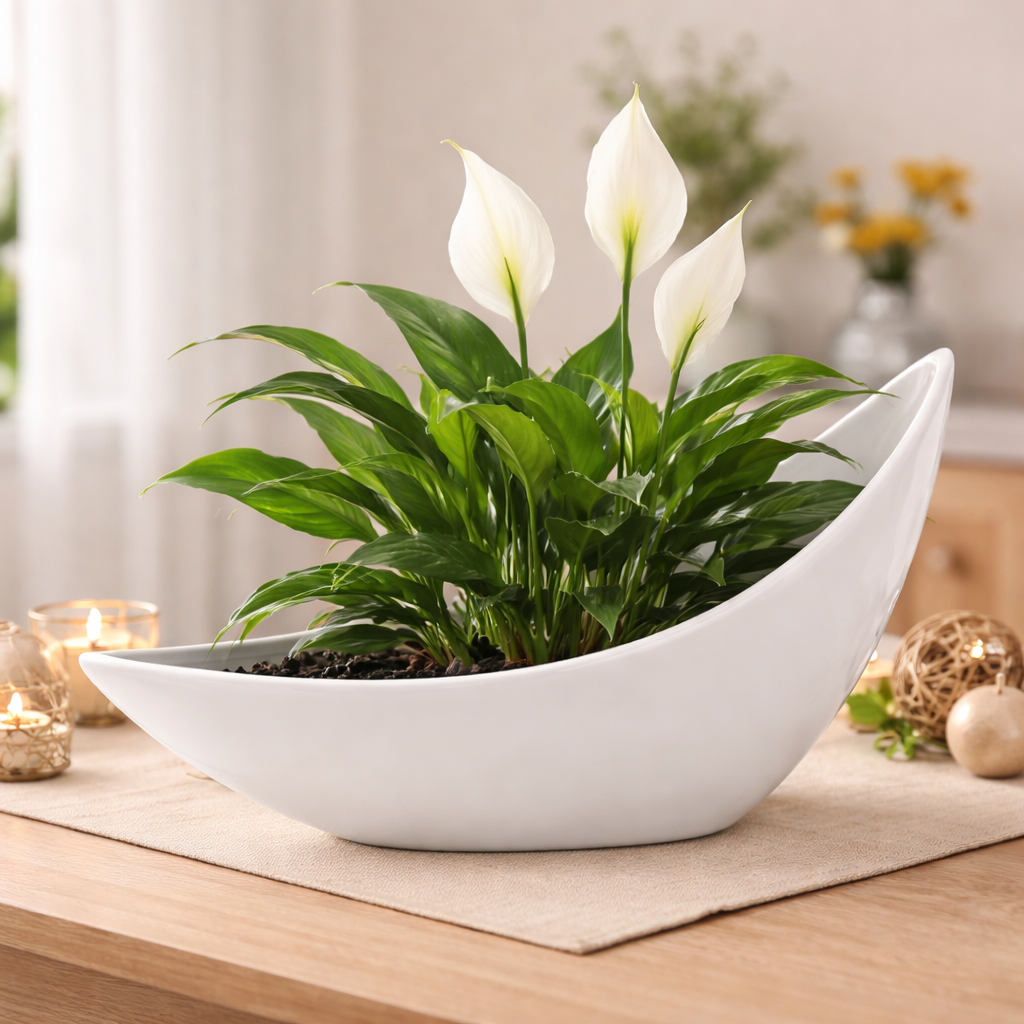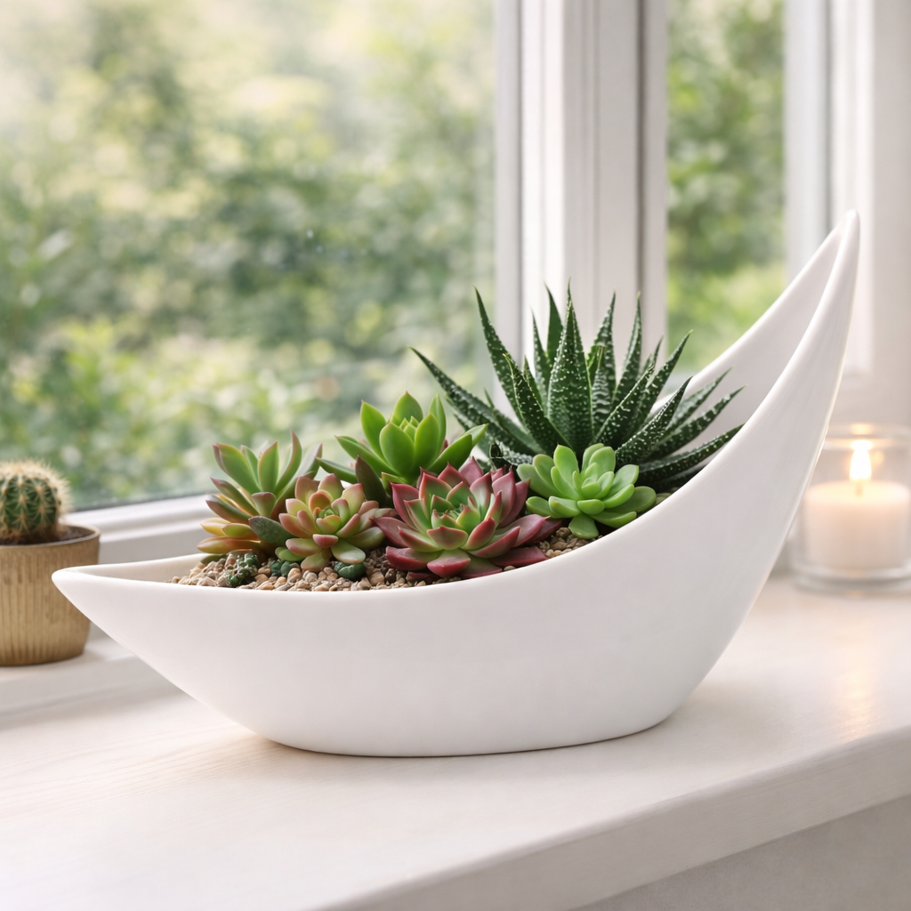 Obohaťte svůj oblíbený prostor rostlinami vsazenými do originálního obalu na květiny v nádherné bílé barvě ve tvaru připomínajícím loďku. Tento nepravidelně tvarovaný klenot je zrozen pro moderní interiéry, kde přináší nejen vkusnou estetiku, ale také dovede vaše rostliny posunout na novou úroveň. Jeho působivý vzhled dodá místnosti zcela nový rozměr. Ať už jde třeba o exotické sukulenty nebo tradičnější květiny plné živých barev, bude vše nádherně kontrastovat právě s bílým povrchem obalu. Zdůrazníte jedinečnost každé rostliny, zatímco nepravidelný tvar dodává celé kompozici zajímavý dynamický prvek. Tyto obaly jsou unikátním prostředkem, jak spojit jedinečnou souhru keramické vznešenosti s přírodní krásou květin.