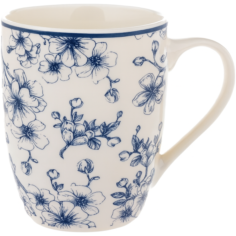 Sada 6 keramických hrnků Něžné kvítí 300 ml, modrá