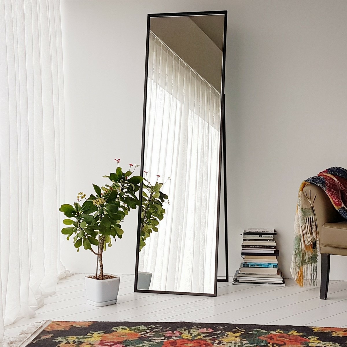 Zrcadlo Cool Black je výrazný designový kousek, který kombinuje moderní estetiku s vysokou funkčností. Masivní rám ze 100% kovu dodává zrcadlu pevnost, stabilitu a dlouhou životnost, takže se stane spolehlivým prvkem vašeho interiéru na mnoho let. Elegantní černá barva podtrhuje luxusní vzhled a snadno ladí s moderním, industriálním či minimalistickým stylem.Velkorysé rozměry 50 × 170 cm poskytují dostatek prostoru pro celopostový odraz, zatímco integrované police nabízejí praktické místo pro uložení drobností, kosmetiky nebo dekorací. Díky možnosti připevnění na stěnu je zrcadlo stabilní a bezpečné pro každodenní použití v ložnici, obýváku i předsíni.Parametry produktu materiál rámu: 100 % kov rozměry: 50 × 170 × 60 cm (max. hloubka) integrované police: ano montáž: možnost připevnění na stěnu barva: černá