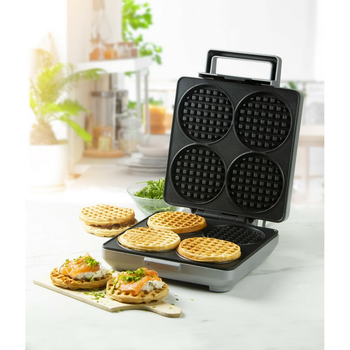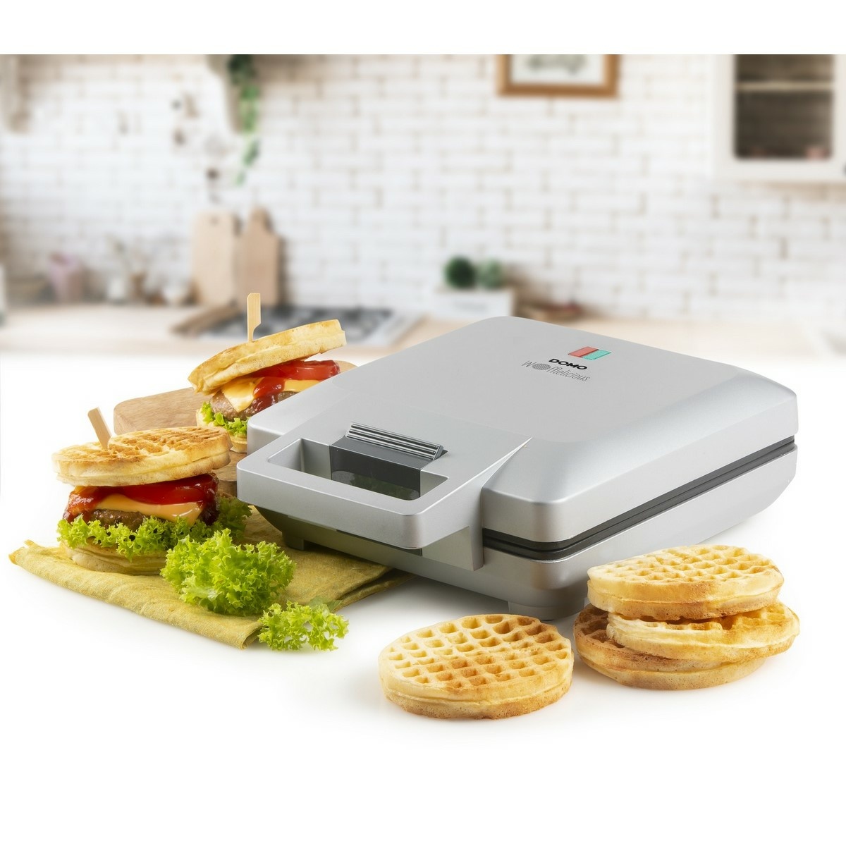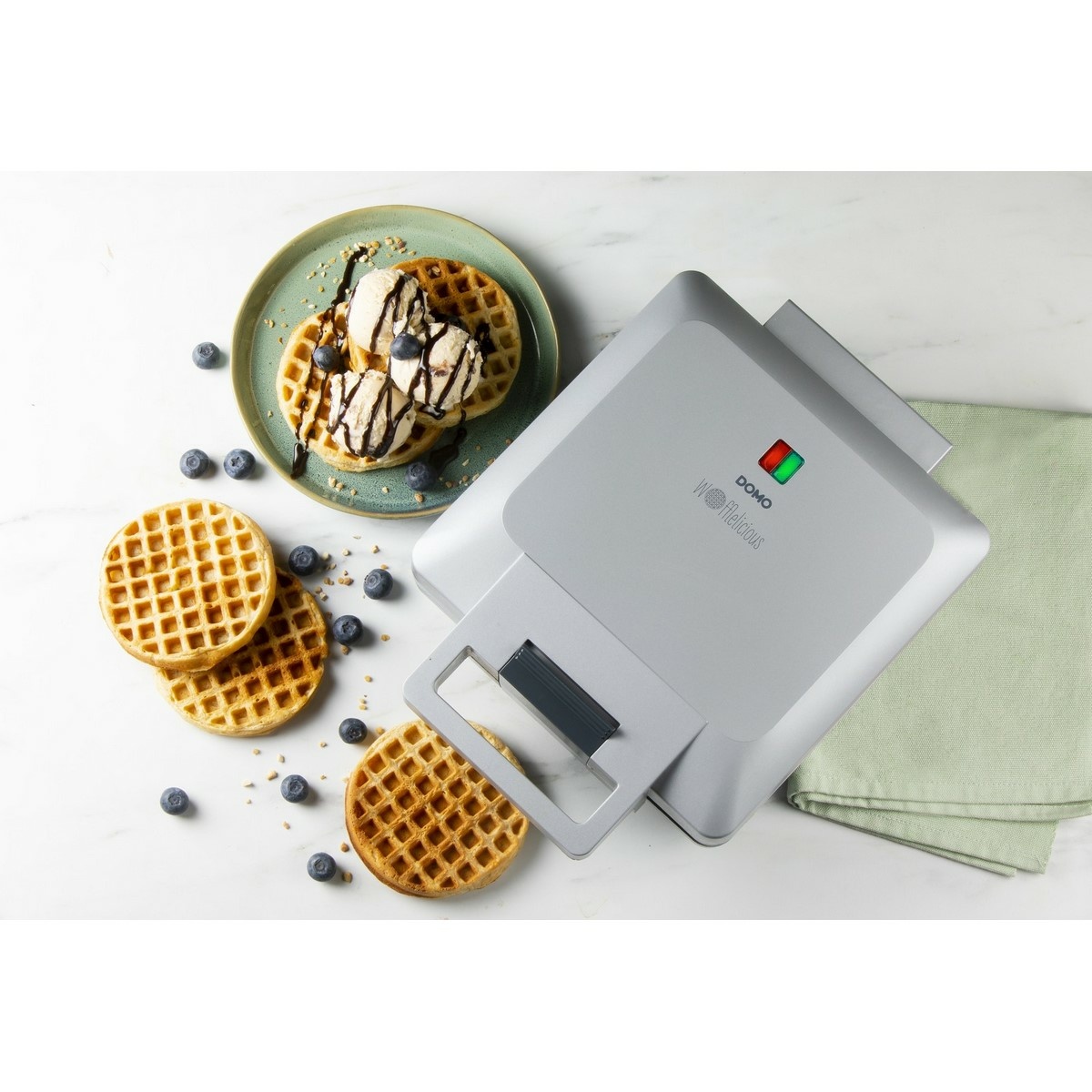 DOMO DO9251W vaflovač na 4 vafle je výkonný a praktický pomocník pro domácí přípravu sladkých i slaných vaflí. Díky unikátnímu tvaru pečicích desek umožňuje připravit čtyři kulaté belgické vafle najednou, takže je ideální pro rodinné snídaně, brunche i rychlé pohoštění pro návštěvu.Vaflovač je vhodný pro všechny druhy vaflí – od klasických vanilkových až po vydatné snídaňové varianty s ovesnými vločkami. Vysoký příkon 1600 W zajišťuje rychlé nahřátí a rovnoměrné propečení celé plochy, výsledkem jsou zlatavé vafle s křupavou kůrkou a nadýchaným středem.Pečicí desky jsou opatřeny kvalitním nepřilnavým povrchem ILAG Corflon Ultra, který zabraňuje připalování a výrazně usnadňuje čištění. O bezpečný a pohodlný provoz se stará tepelně izolované tělo CoolTouch, tepelně izolovaná rukojeť a protiskluzové nožičky. Světelné kontrolky jasně signalizují zapnutí přístroje a dosažení provozní teploty.Díky kompaktním rozměrům a zámku víka lze vaflovač snadno skladovat ve svislé poloze, takže nezabere zbytečně místo v kuchyni.