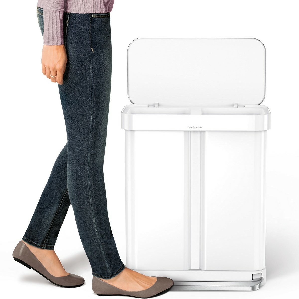 Simplehuman Pedálový odpadkový koš na tříděný odpad 58 l, bílá