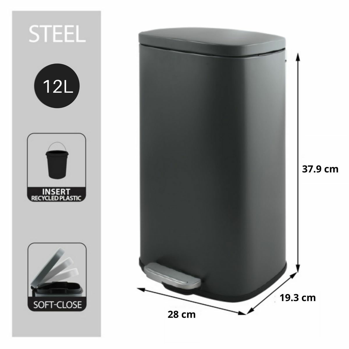 Spirella Pedálový odpadkový koš soft-close Akira 12 l, matná šedá, 12 l