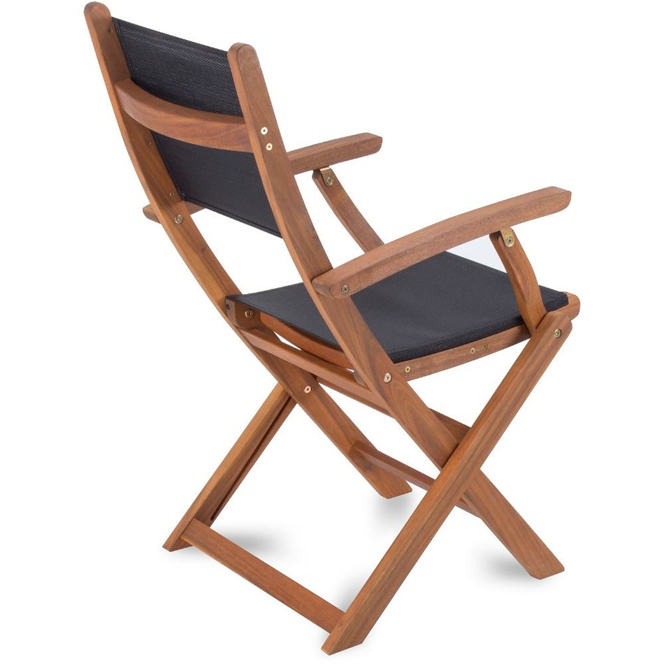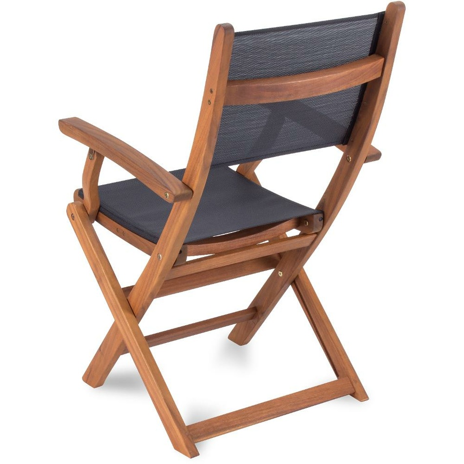 Optimální pohodlí pro posezení u oběda nebo sklenky vína nabídne zahradní křesílko FDZN 4201-T. Skládací, ergonomicky tvarované křeslo s područkami (54 x 65 x 94 cm) a nosností 110 kg je vyrobeno ze dřeva tropické akácie. Akácie je druh exotického dřeva, které pochází z asijských tropických lesů. Vyznačuje se vysokou odolností proti povětrnostním vlivům, stárnutí a biologické degradaci. Veškeré dřevěné součásti křesílka jsou již z výroby ošetřeny olejovým nátěrem. Výplň křesla je tvořena odolnou umělou textilií, která se ani na přímém sluníčku nerozpálí a je zcela bezúdržbová. Textilní výplet je tak měkký, že snadno nahradí i podsedáky. Křeslo ve složeném stavu zabírá minimální prostor a má nízké nároky na skladování. Je určeno pro venkovní i vnitřní použití, což z něj činí všestranný a praktický doplněk pro různé typy prostředí.