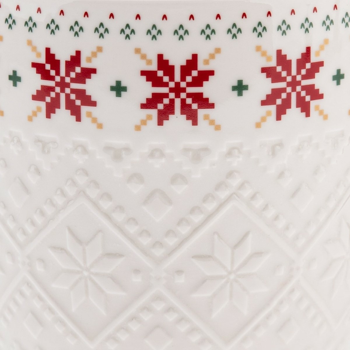 Hrnek Pletený květ je výrazný zimní hrnek, který spojuje elegantní porcelán s nápaditým reliéfem připomínajícím pletený vzor. Spodní část hrnku působí jako struktura teplého svetru, zatímco horní část zdobí jemný dekor květů v tradičním zimním stylu. Kontrastní červené ucho celý vzhled zvýrazňuje a dodává hrnku příjemně hřejivý charakter.Porcelánové provedení nabízí lehkost i pevnost, díky čemuž je hrnek vhodný pro pravidelné používání v domácnosti i kanceláři. Objem 630 ml poskytuje dostatek prostoru pro čaj, kakao, kávu nebo jiné teplé nápoje, které si užijete během chladnějších dnů. Tvar hrnku je pohodlný do ruky a vyšší okraj přispívá k příjemnému pití i stabilnímu držení.Hrnek je skvělou volbou pro všechny, kdo mají rádi výrazné zimní motivy a útulnou atmosféru. Díky reliéfnímu povrchu a dekorativním detailům se stane nejen praktickým doplňkem, ale i stylovým dárkem pro nejbližší.Hlavní výhody produktu reliéfní povrch s pleteným vzorem dekor s květinovým zimním motivem velký objem 630 ml ideální pro horké nápoje lehké a pevné porcelánové provedení pohodlné ucho pro stabilní držení atraktivní design vhodný jako dárekObsah balení 1× porcelánový hrnek 630 ml