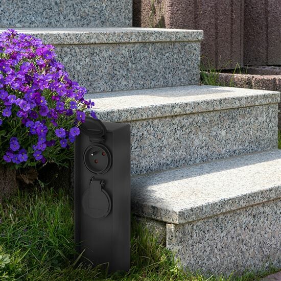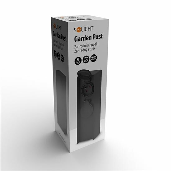 Solight PG04 Zahradní sloupek IP44, plast, 2 zásuvky, hranol, černá