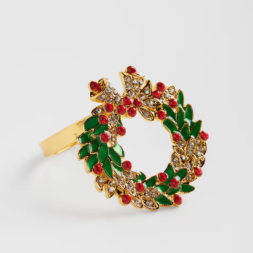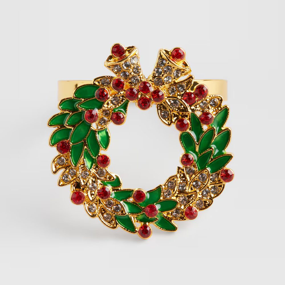 Rozměry: průměr 4,5 cm Materiál: kov, plast Ozdobte svůj sváteční stůl těmito elegantními kroužky na ubrousky s motivem vánočního věnce a přidejte každý servírovací detail do slavnostní atmosféry.