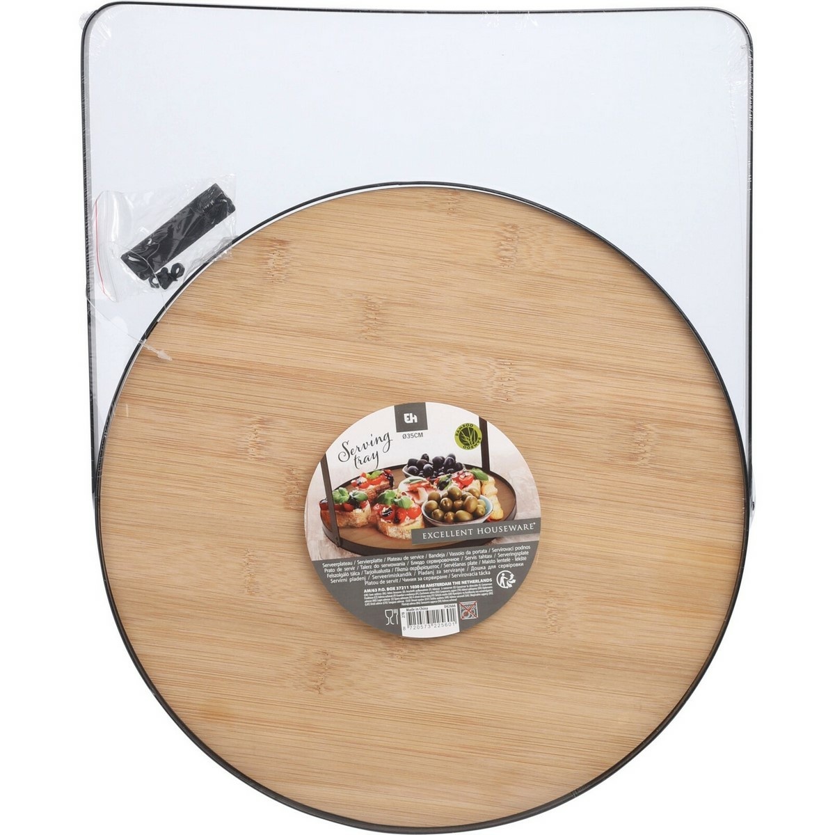 EH Bambusový kulatý podnos s kovovou rukojetí, 35 cm
