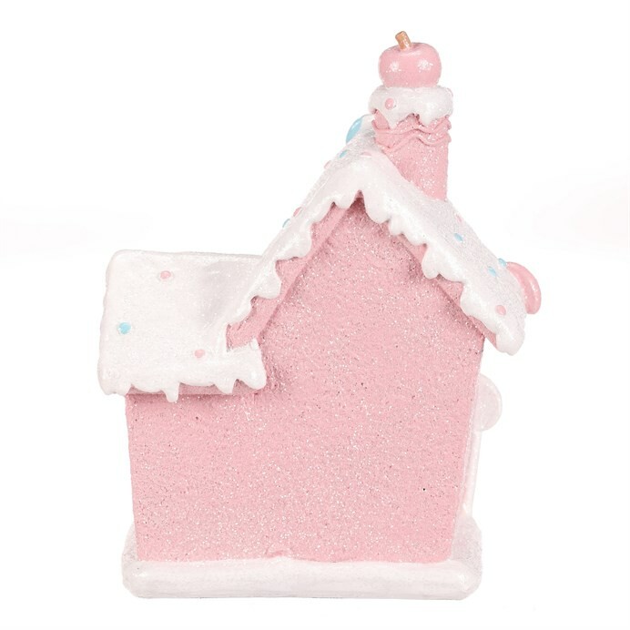 Vánoční dekorace Domek z cukrovinek, polyresin, LED, růžová