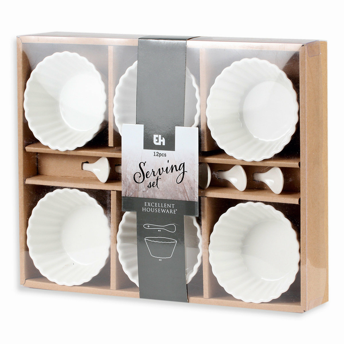 EH Sada servírovacích misek se lžičkami Vlnovka kulatá, 12 ks