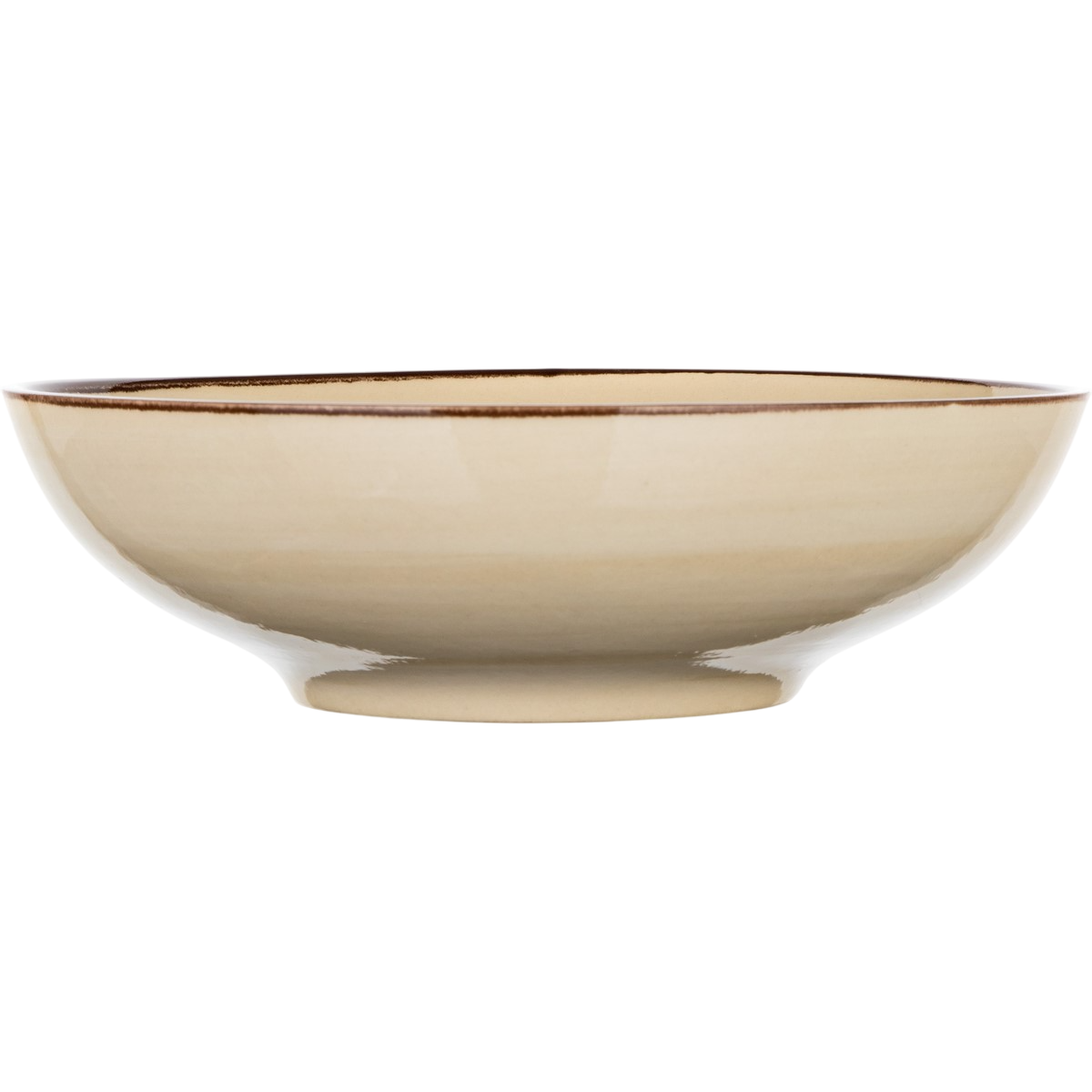 Krémový hluboký talíř PALAS ozdobený tmavým lemem se bude hodit do každého jemně či přírodně laděného interiéru. Tento hluboký talíř má průměr 18 cm a hodí se na podávání polévky, salátu, těstovin, různých kaší či ovoce a zeleniny.Díky decentní krémové barvě a hnědému lemu je snadno kombinovatelný i s hnědými talíři, miskami a šálky z kolekce PALAS.Je vyroben z odolné keramiky a je určen pro každodenní používání, vhodné do mikrovlnné trouby i myčky nádobí.