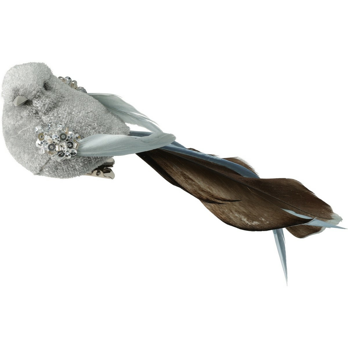 Sada vánočních ozdob Ptáček, šedá, 14x4x4cm, s klipem, SADA 2 KS