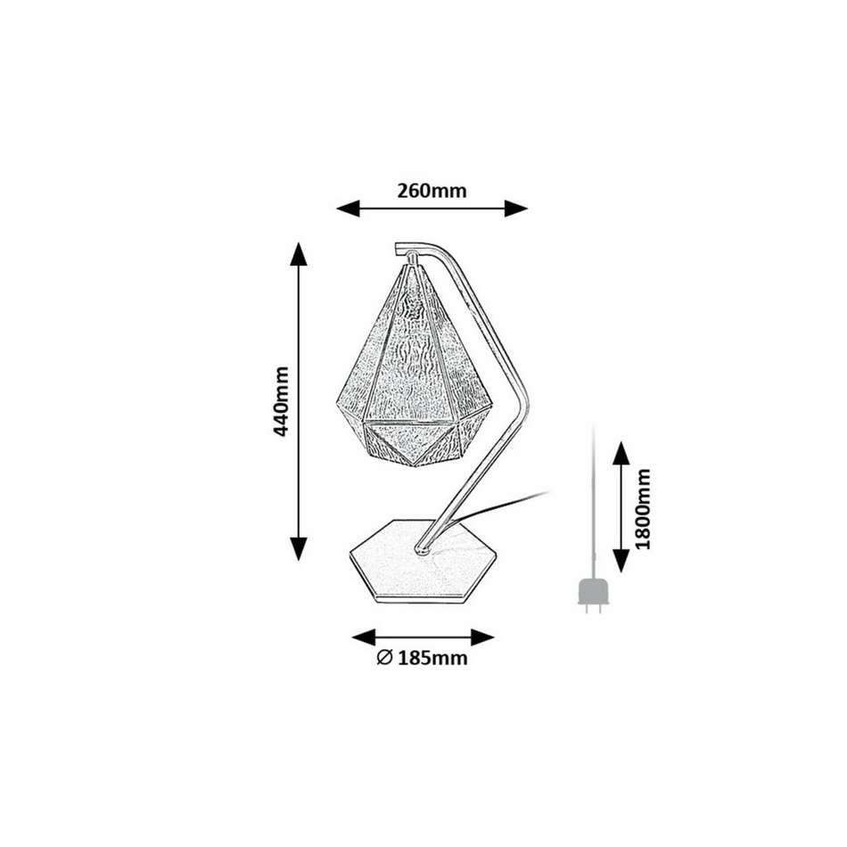 Romantická stolní lampa Norah může být jedinečným a elegantním kusem nábytku vašeho obývacího pokoje nebo ložnice. Můžete ji umístit na noční stolek nebo na jakýkoli stůl – obzvláště dobře vypadá na dřevěném nábytku. Hlava lampy visí dolů z vrcholu centrálně ohnutého zlatého stonku a zlatou kovovou lampu doplňuje modré skleněné stínítko připomínající nádherně vyleštěný drahokam. Nora je stabilizována šestiúhelníkovou ozdobnou základnou zlaté barvy. Stolní lampu lze provozovat s jedním světelným zdrojem s maximálním příkonem 40 W, typ patice E14. Chcete-li tento model ve vintage stylu používat v ložnici, doporučujeme použít zdroj teplého bílého světla, který pomůže vytvořit útulnou domácí atmosféru a pomůže vám uvolnit se před usínáním. Rozměry stolní lampy Norah s černým textilním kabelem a drátovým vypínačem jsou tyto: výška 440 mm, šířka 260 mm, průměr 185 mm a délka kabelu 1800 mm. Tento model se dodává bez světelného zdroje.