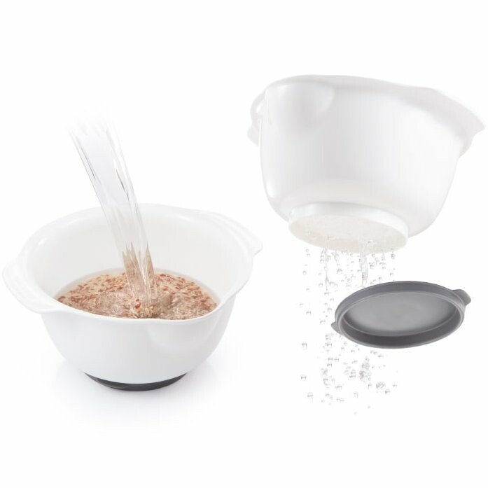 Pro snadné cezení, proplachování i nabobtnávání potravin. Umožňuje pohodlně scedit potraviny. Na dno cedicí mísy PRESTO můžete nasadit uzávěr, potraviny v míse nejprve důkladně a bez plývání vodou propláchnout a poté je sejmutím uzávěru scedit.V míse s uzavřeným dnem můžete také potraviny (např. luštěniny) nechat přes noc nabobtnat. Po nabobtnání sejmete z mísy uzávěr a připravené potraviny pohodlně scedíte a propláchnete.