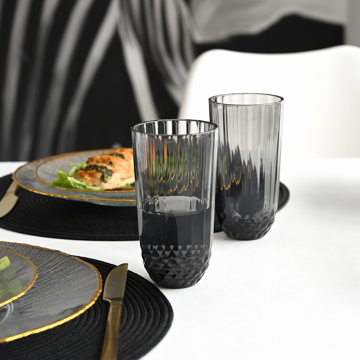 Obohaťte vaši domácnost o originální sklenice na pití s objemem 345 ml z kouřově zabarveného skla s originálním tvarem. Prostřený stůl bude díky těmto sklenicím ihned zajímavějším a upoutá pozornost každého návštěvníka. Vybavení kuchyně nemusí znamenat pouze čiré sklo a rovný povrch, buďte originální a slaďte si domácnost do neobvyklých odstínů a tvarů.