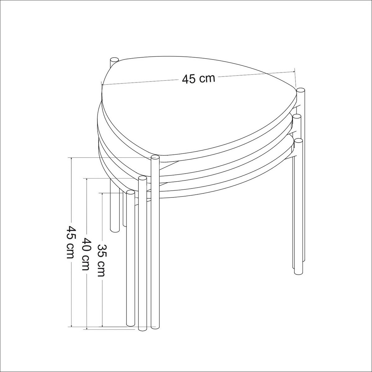 Sada odkládacích stolků Lenny Anthracite, 3 ks je praktickým a stylovým doplňkem do moderní domácnosti. Díky chytrému stohovatelnému provedení nabízí variabilní využití i úsporu místa, zatímco elegantní antracitová barva podtrhuje současný vzhled interiéru.Stolky jsou vyrobeny ze 100% melaminem potažené dřevotřískové desky o tloušťce 18 mm a doplněny o pevný kovový rám, který zajišťuje stabilitu a dlouhou životnost. Tři různé výšky umožňují použití jednotlivě i zasunuté do sebe, což oceníte zejména v menších prostorech.Důležité informace: materiál desky: melaminem potažená dřevotříska tloušťka materiálu: 18 mm konstrukce: kovový rám barva: antracitová rozměry: 45 × 45 × 45 cm / 45 × 45 × 40 cm / 45 × 45 × 35 cm balení: 3 ks