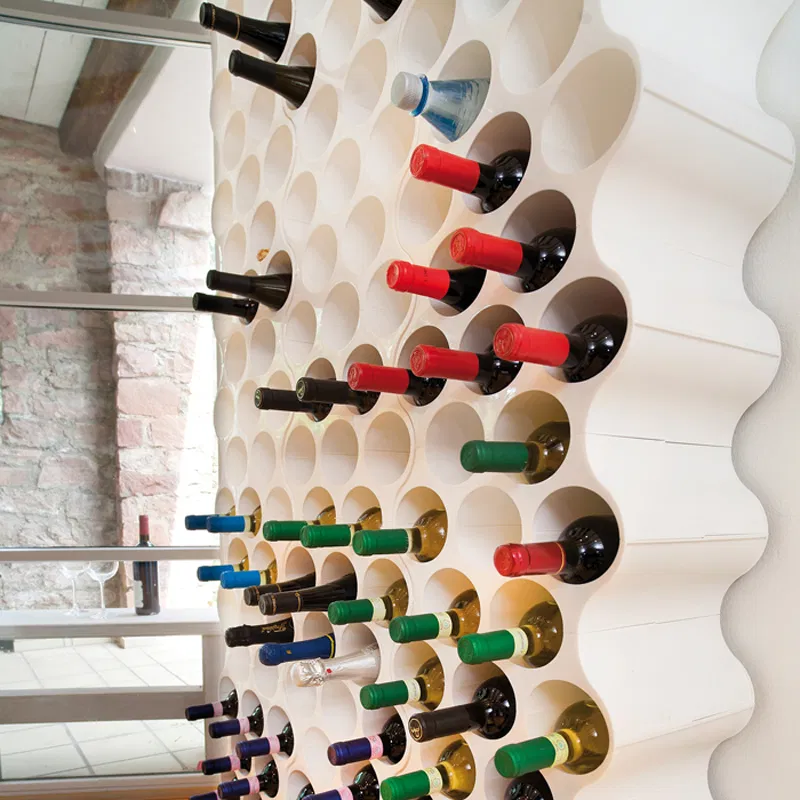 Modulární stojan na láhve SET-UP je designovým a úložným prvkem pro láhve vína, vody a limonád. Jednotlivé moduly nabízí perfektní stabilitu díky svému voštinovému tvaru a materiálu. Modulární stojan lze sestavit stejně snadno jako stavebnici, jednotlivé díly lze kombinovat, rozšiřovat, stohovat na sebe nebo přestavovat vedle sebe. Rozšiřitelné podle potřeby. Montážní materiál není potřeba. SET-UP je tak elegantní, že se nemusí skrývat ve spíži, ale může se stát i funkčním prvkem v kuchyni nebo na stěnách obývacího pokoje či jídelny. Pro láhve do průměru 9 cm.
