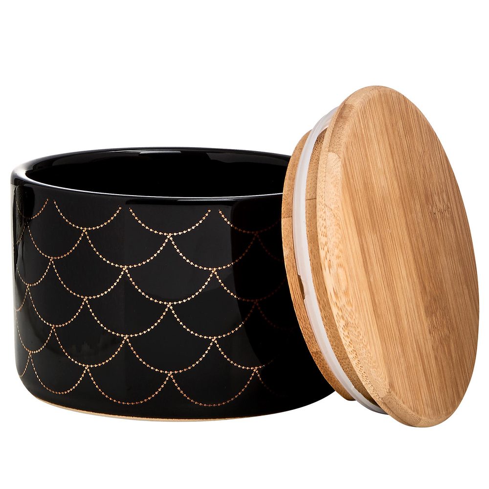 Rozměry: průměr 11 cm, V 8 cm Objem: 400 ml Materiál: kamenina, bambus, silikon Dodatečné informace: Není vhodné do myčky nádobí. Není vhodné do mikrovlnné trouby. A královnou mezi odkládacími dózami se stává QUEEN IT. Vzhledu dominuje moderní design s dekorativním vzorem vlnek a díky praktickému bambusovému víku se silikonovým těsněním bezpečně uschová jakýkoliv obsah. K dostání různé velikosti a varianty, které budou skvěle vypadat jak v koupelně, tak v kuchyni, na polici i na prostřeném stole. Ideálně…