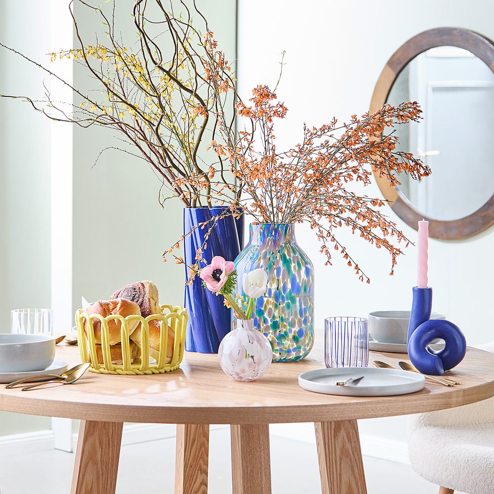 Rozměry: průměr 10 cm, V 11 cm Materiál: sklo Barevné konfety jsou skutečným zlepšovačem nálady, a proto je skleněná váza CONFETTI zdobena vzorem připomínajícím tančící pastelové kousky papíru. S touto vázou můžete vytvořit hravou atmosféru na stole, na komodě, ale skvěle bude vypadat i v pracovně, zejména během náročných dní.
