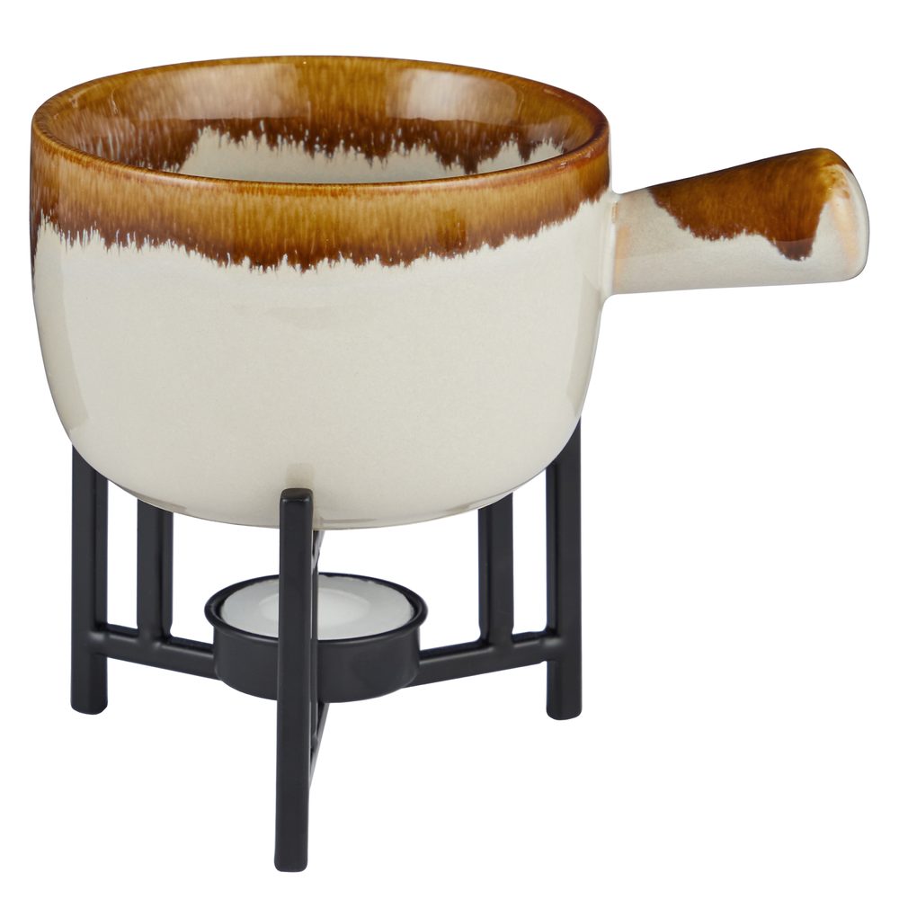 Rozměry: D 17 x Š 12 x V 8 cm Objem: 490 ml Materiál: kamenina, nerezová ocel, dub Ať už si tuto chvíli užíváte sami, nebo ve dvou, kameninová sada fondue AU CHOCOLAT Vám ji zaručeně zpříjemní. Její zaoblený tvar a béžová reaktivní glazura jí dodávají přirozený, lehce retro nádech. Sada obsahuje také dvě dubové vidličky na fondue z nerezové oceli (čajová svíčka není součást balení). Skvěle se hodí k namáčení sušenek nebo kousků ovoce do rozpuštěné čokolády na dezert.