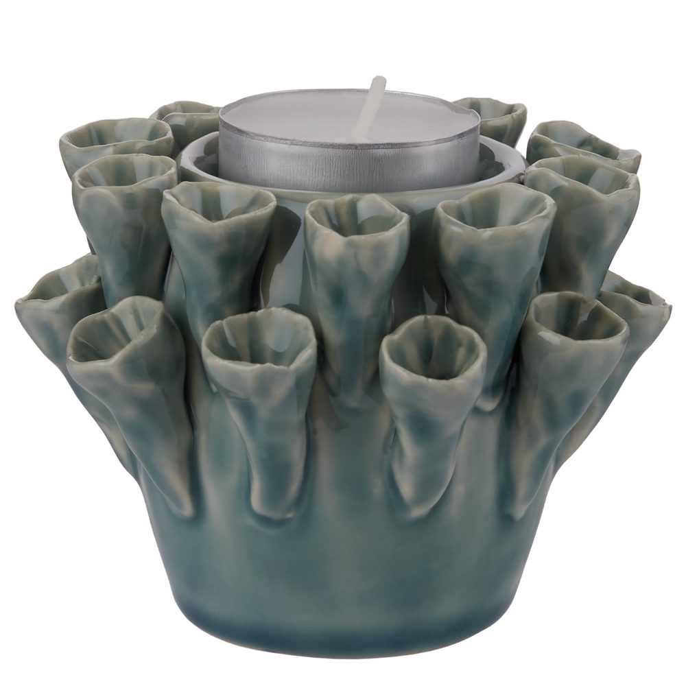 Rozměry: průměr 9 x V 7 cm Materiál: kamenina Svícen na čajovou svíčku CORAL je inspirován organickými tvary podmořského světa. Vyroben je z kameniny a jeho jedinečný povrch spolu s přirozenými liniemi z něj činí zajímavý dekorativní kousek - ideální jak na prostřený stůl, tak pro vytvoření příjemné atmosféry v obývacím pokoji.