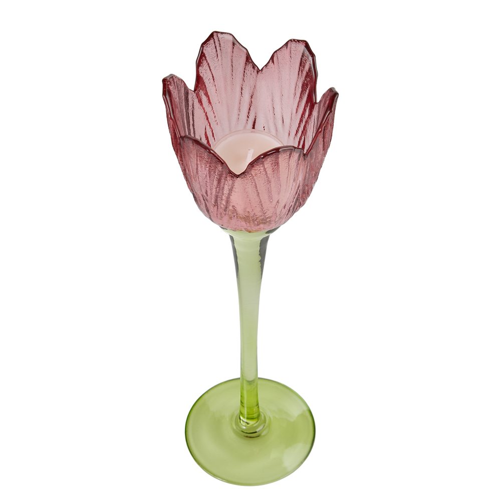 TULIP Svícen na čajovou svíčku 28 cm - červená