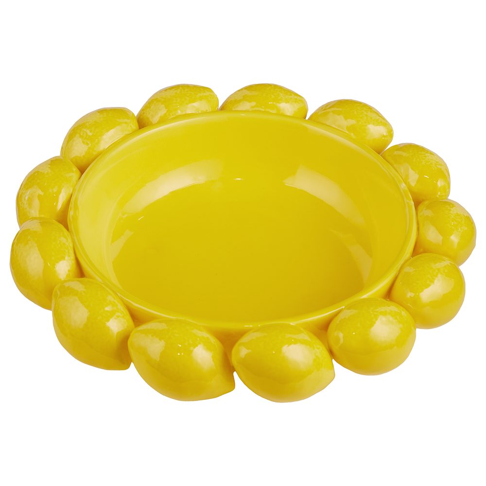Materiál: Kamenina Rozměry: Výška: 6 cm, Ø 25 cm Vhodné do myčky nádobí. Zářivě žlutá barva a výrazný tvar talíře LEMON vás okamžitě rozveselí. Detailní zpracování připomíná jihoevropské keramické řemeslo, díky čemuž je tento dekorativní kus nejen praktický, ale i velkolepým doplňkem prostírání. Do každodenního života vnáší osvěžující letní atmosféru – ať už jde o snídani, dezert nebo předkrmy.