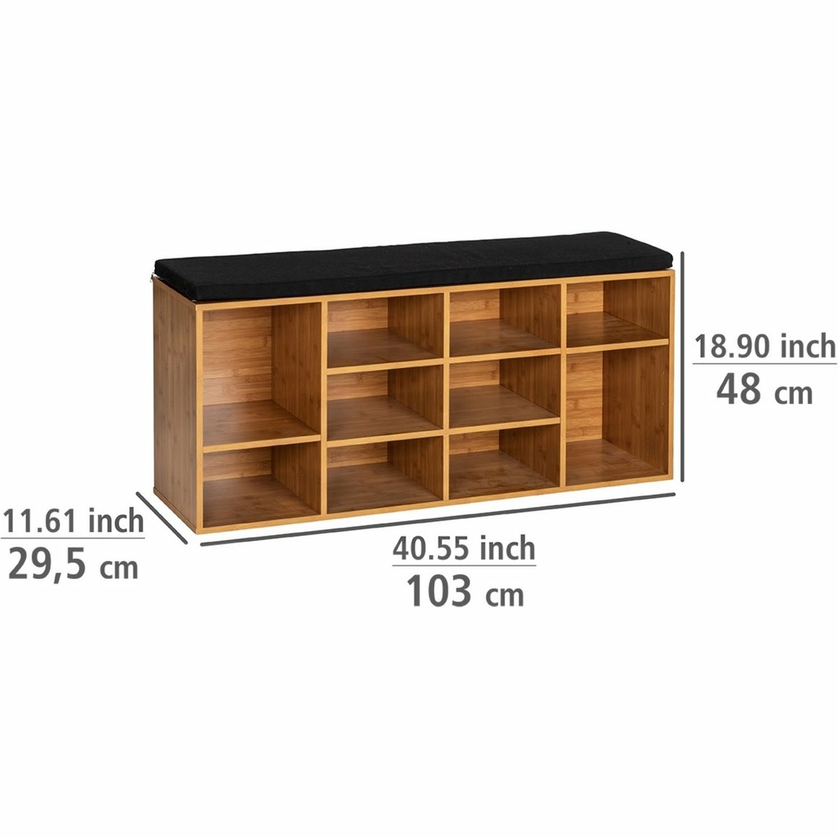Botník se sedátkem LOFT od značky Wenko je praktickým a stylovým řešením pro přehledné uložení obuvi v předsíni, chodbě nebo šatně. Kombinuje funkci botníku a pohodlné lavice v jednom kusu nábytku, který zaujme industriálním vzhledem a čistými liniemi. Bambusový dekor působí teple a přirozeně, zatímco černý sedák vytváří kontrast, který podtrhuje moderní charakter.Korpus botníku je vyroben z pevného MDF materiálu v bambusovém dekoru, který se vyznačuje dobrou stabilitou a odolností při každodenním používání. Horní část tvoří čalouněné sedátko s měkkou výplní, které zpříjemní obouvání i zouvání. Potah sedáku je z kvalitního polyesteru, lze jej snadno sejmout a vyprat, což oceníte zejména v domácnostech s dětmi nebo domácími mazlíčky.Vnitřní uspořádání nabízí otevřené přihrádky, které poskytují dostatek prostoru až pro 10 párů bot. Konstrukce je navržena tak, aby pojala jak nízké boty, tak i vyšší obuv, například kotníkové boty nebo tenisky s vyšší podrážkou. Díky otevřenému provedení máte obuv vždy přehledně uloženou a snadno dostupnou.Hlavní výhody produktu kombinace botníku a pohodlné lavice v jednom kusu 10 otevřených přihrádek pro přehledné uložení obuvi čalouněné sedátko s odnímatelným a pratelným potahem stabilní konstrukce z MDF v bambusovém dekoru industriální design vhodný do moderních interiérů nosnost sedátka až 80 kgObsah balení 1× botník se sedátkem 1× čalouněný sedák s potahem