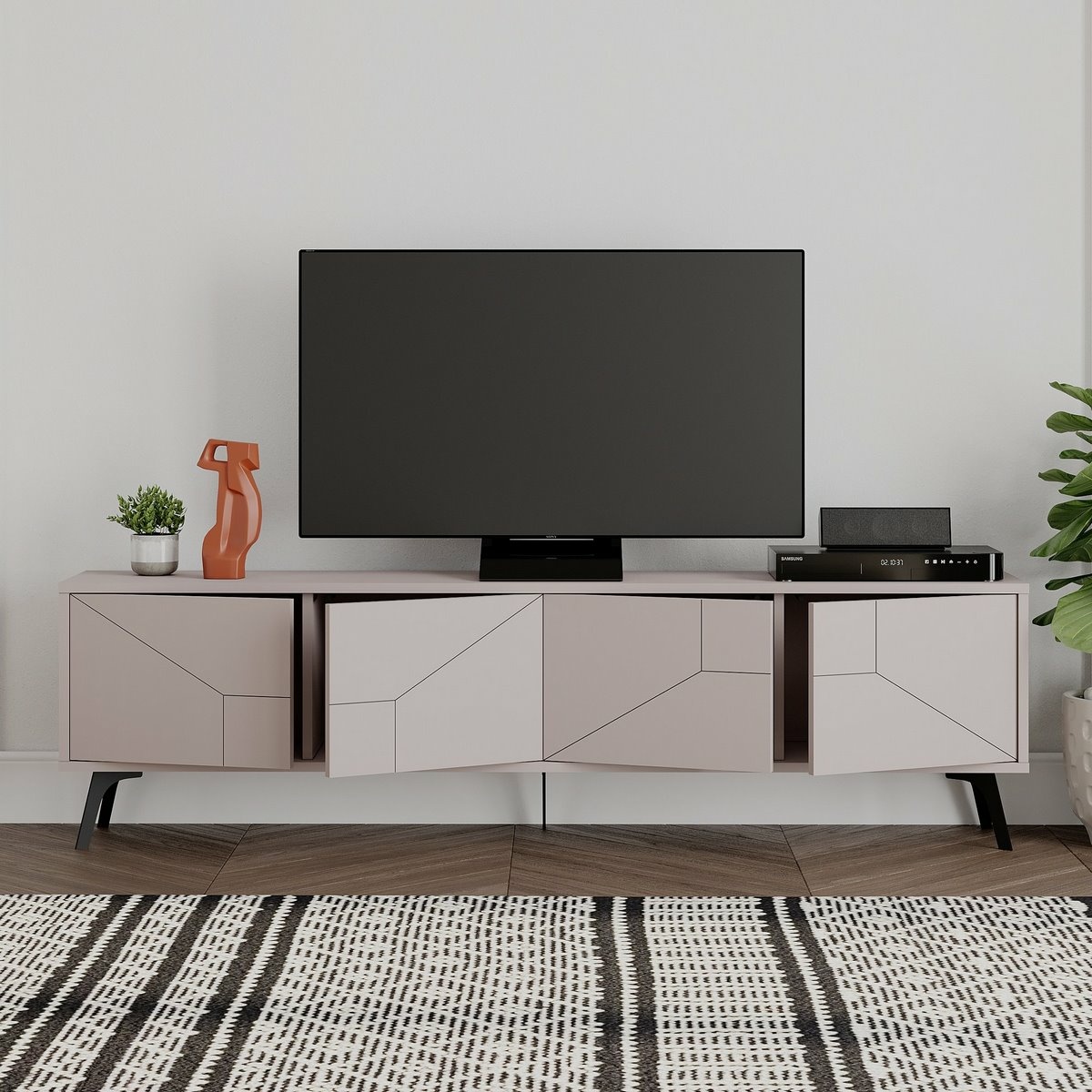 Televizní stolek Dune Light Mocha vnese do obývacího pokoje klidnou a elegantní atmosféru. Jemný odstín Light Mocha působí přirozeně a snadno se sladí s moderním i klasickým interiérem.Stolek je vyroben ze 100% melaminem potažené dřevotřísky o tloušťce 18 mm, která zajišťuje pevnost a dlouhou životnost. Praktické vnitřní police poskytují dostatek prostoru pro uložení elektroniky i doplňků, zatímco tiché závěsy zvyšují komfort při každodenním používání. Kovové nohy dodávají stabilitu a lehký moderní vzhled.Díky svým proporcím nabízí stolek dostatek místa pro televizor i další vybavení, aniž by narušoval vzdušnost prostoru.Technické detaily: materiál: 100% melaminem potažená dřevotříska tloušťka desky: 18 mm rozměry: 180 × 50 × 29,6 cm výška nohou: 15 cm barva: Light Mocha