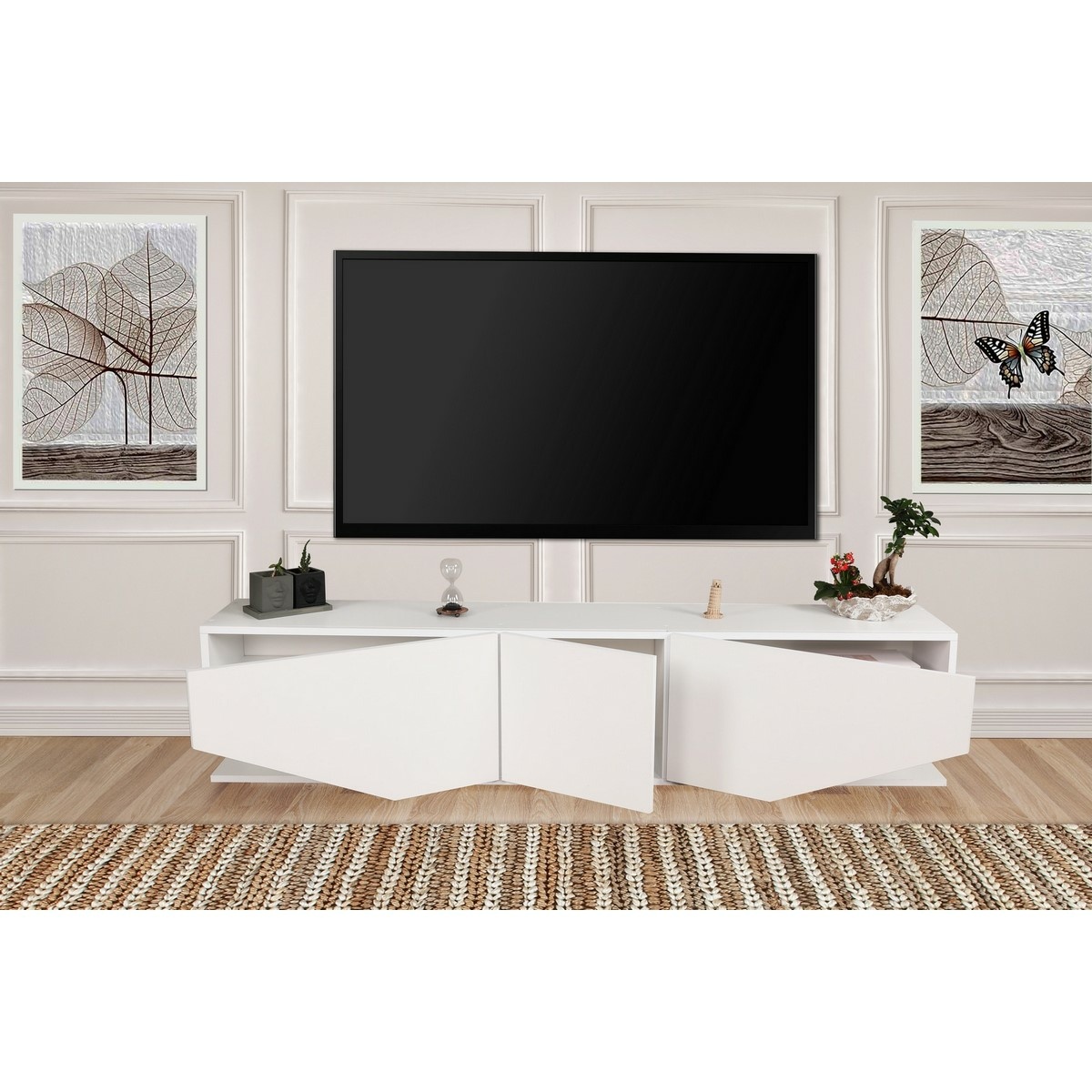 Televizní stolek Inci White je moderní a elegantní řešení pro obývací pokoj, kde vynikne čistý design a jednolité bílé provedení. Minimalistický vzhled se snadno kombinuje s moderním i skandinávským interiérem a vytváří světlý, vzdušný dojem.Stolek je vyroben ze 100% melaminem potažené dřevotřískové desky o tloušťce 18 mm, která zajišťuje pevnost a stabilitu při každodenním používání. Otevřené police nabízejí dostatek místa pro elektroniku a příslušenství, zatímco možnost upevnění na stěnu přispívá k bezpečnosti i flexibilnímu umístění.Parametry a specifikace: materiál: 100% melaminem potažená dřevotřísková deska tloušťka: 18 mm rozměry: 180 × 40 × 30 cm barva: bílá