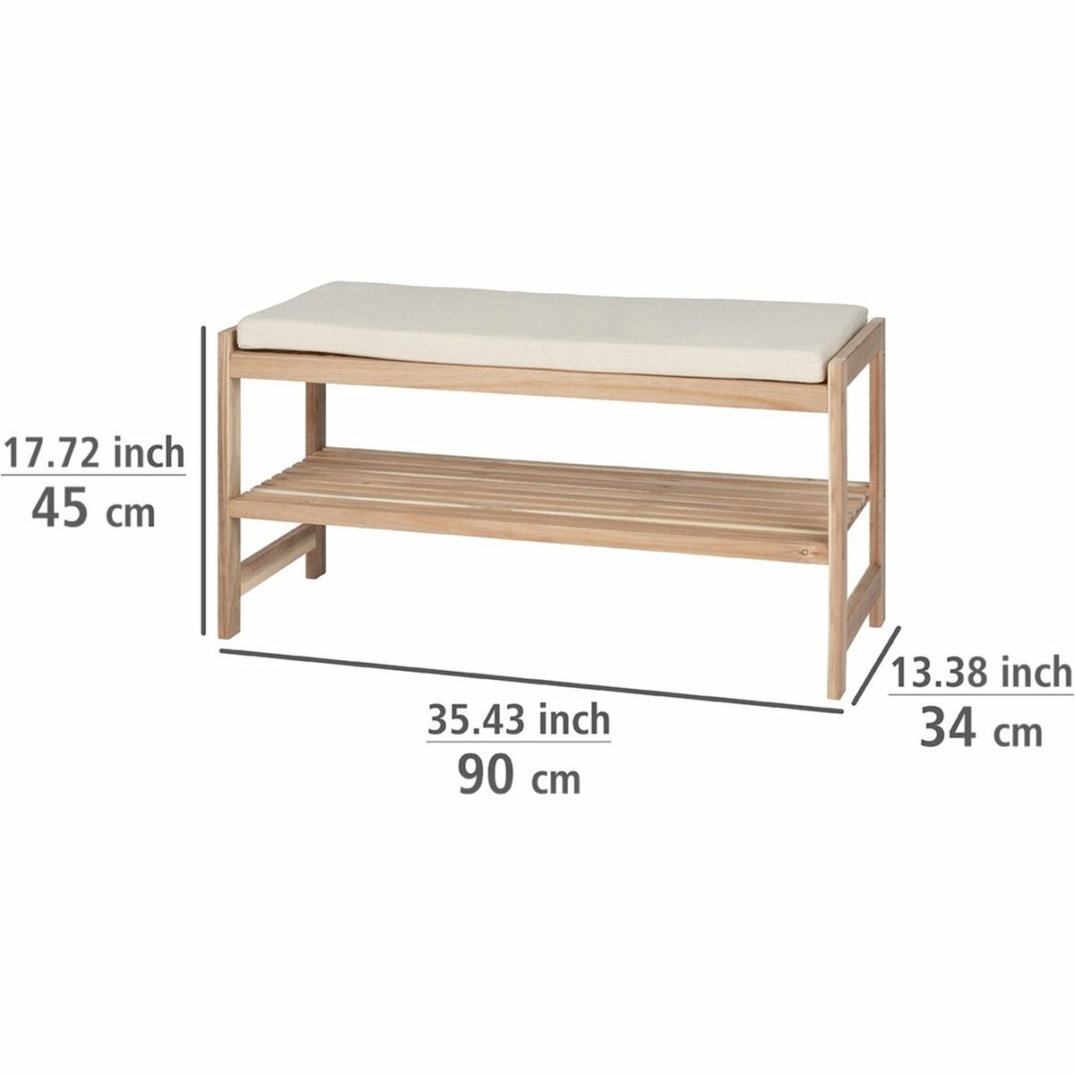Dřevěný botník se sedátkem ACINA od německé značky Wenko je praktickým a zároveň estetickým doplňkem do předsíně, chodby nebo šatny. Kombinuje funkci botníku a pohodlné lavice, která usnadní každodenní obouvání i zouvání. Přírodní provedení působí klidně a harmonicky a snadno zapadne do moderních i klasicky laděných interiérů. Díky kompaktním rozměrům se hodí i do menších prostor, kde nabídne přehledné uložení obuvi bez zbytečného zabírání místa.Konstrukce je vyrobena z masivního akáciového dřeva, které je známé svou pevností, dlouhou životností a výraznou kresbou. Každý kus je originál s jedinečným vzhledem, který podtrhuje přirozený charakter materiálu. Použité dřevo pochází z odpovědně obhospodařovaných lesů a je označeno certifikací FSC, jež garantuje udržitelný původ a šetrný přístup k přírodě. Neošetřený povrch zachovává autentický vzhled dřeva a umožňuje případnou individuální úpravu.Horní část tvoří pohodlné čalouněné sedátko s krémovým potahem ze směsi 70 % bavlny a 30 % polyesteru, které je příjemné na dotek a vhodné pro každodenní používání. Potah lze snadno sejmout a vyprat, což usnadňuje údržbu. Pod sedátkem se nachází praktická police, která nabízí prostor až pro čtyři páry bot. Botník tak pomáhá udržet předsíň přehlednou a uklizenou. Po sejmutí sedáku a ošetření dřeva olejem či lakem lze lavici využít také v krytých venkovních prostorách. Produkt je součástí série Acina, která spojuje přírodní materiály, funkčnost a nadčasový design v jednotném stylu.Hlavní výhody produktu kombinace botníku a lavice v jednom kusu nábytku masivní akáciové dřevo s certifikací FSC pohodlné čalouněné sedátko s pratelným potahem úložný prostor až pro čtyři páry bot kompaktní rozměry vhodné i do menších předsíní součást ucelené série AcinaObsah balení 1× botník se sedátkem 1× sedák s potahem