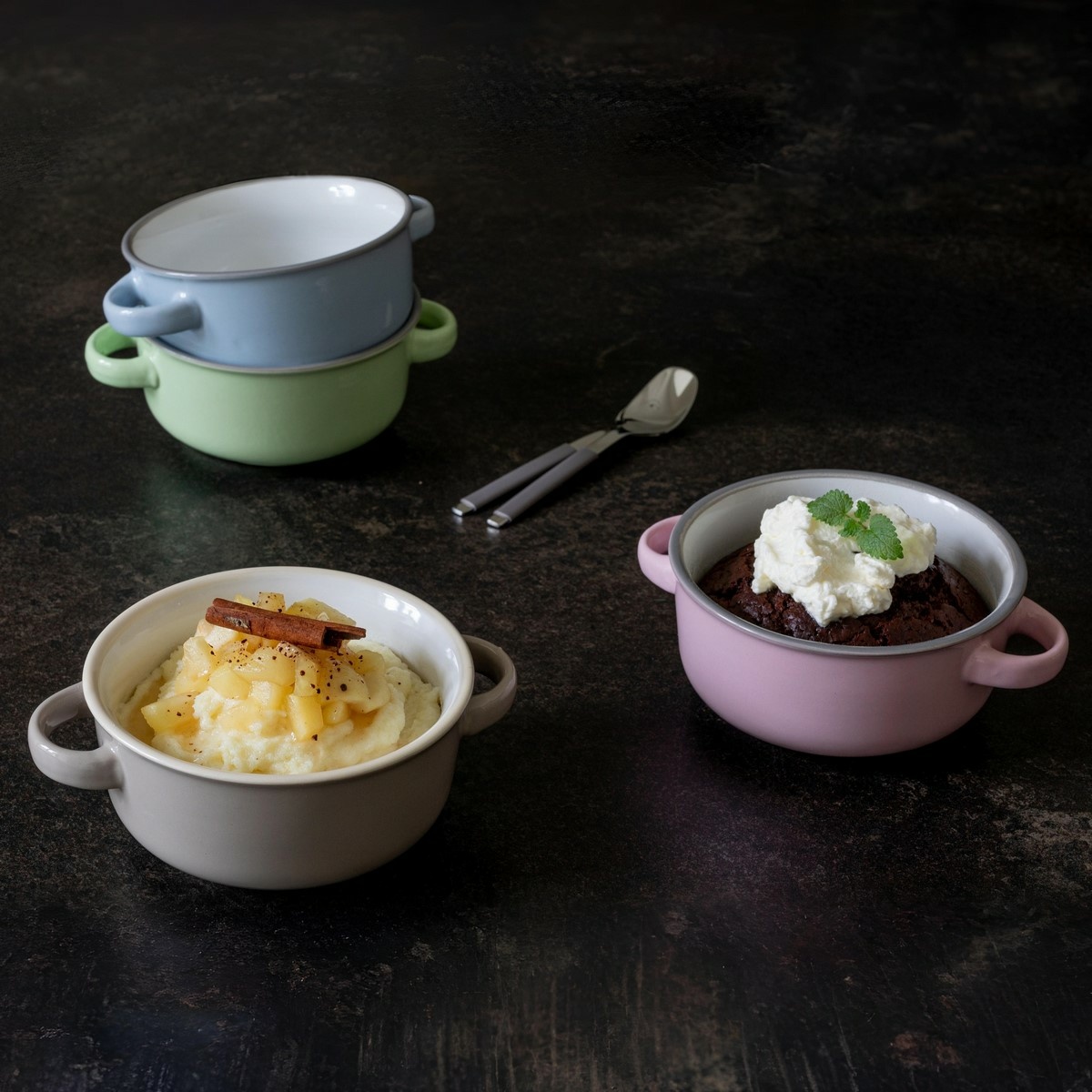 Sada polévkových misek MAILA od značky Mäser představuje stylový doplněk ke stolování, který zaujme jemnou kombinací barev a lesklým povrchem. Každá miska má odlišný odstín, díky čemuž působí celek hravě, ale zároveň vyváženě. Barevná paleta zahrnuje svěle modrou, zelenou, růžovou a šedou, které se snadno kombinují s dalšími prvky kolekce MAILA i s jednobarevným nádobím.Misky jsou vyrobeny z kvalitní kameniny, která je pevná, odolná a vhodná pro každodenní používání. Hladká glazura s kontrastním okrajem dodává každému kusu osobitý charakter a zároveň usnadňuje údržbu. Vnitřní světlý povrch zvýrazní barvu pokrmů a působí čistě při servírování polévek, krémů, snídaňových kaší i menších těstovinových jídel.Díky objemu 400 ml jsou misky vhodné pro běžné domácí servírování i neformální stolování s přáteli. Lze je bez obav používat v mikrovlnné troubě a mýt v myčce nádobí, což oceníte při každodenním provozu. Barevné provedení navíc umožňuje každému u stolu snadno rozlišit svou misku.Hlavní výhody produktu sada 4 misek v různých barvách kvalitní kamenina s odolnou glazurou vhodné na polévky, snídaně i menší pokrmy použití v mikrovlnné troubě i myčce nádobí součást barevně sladěné kolekce MAILAObsah balení 4× miska 16 cm