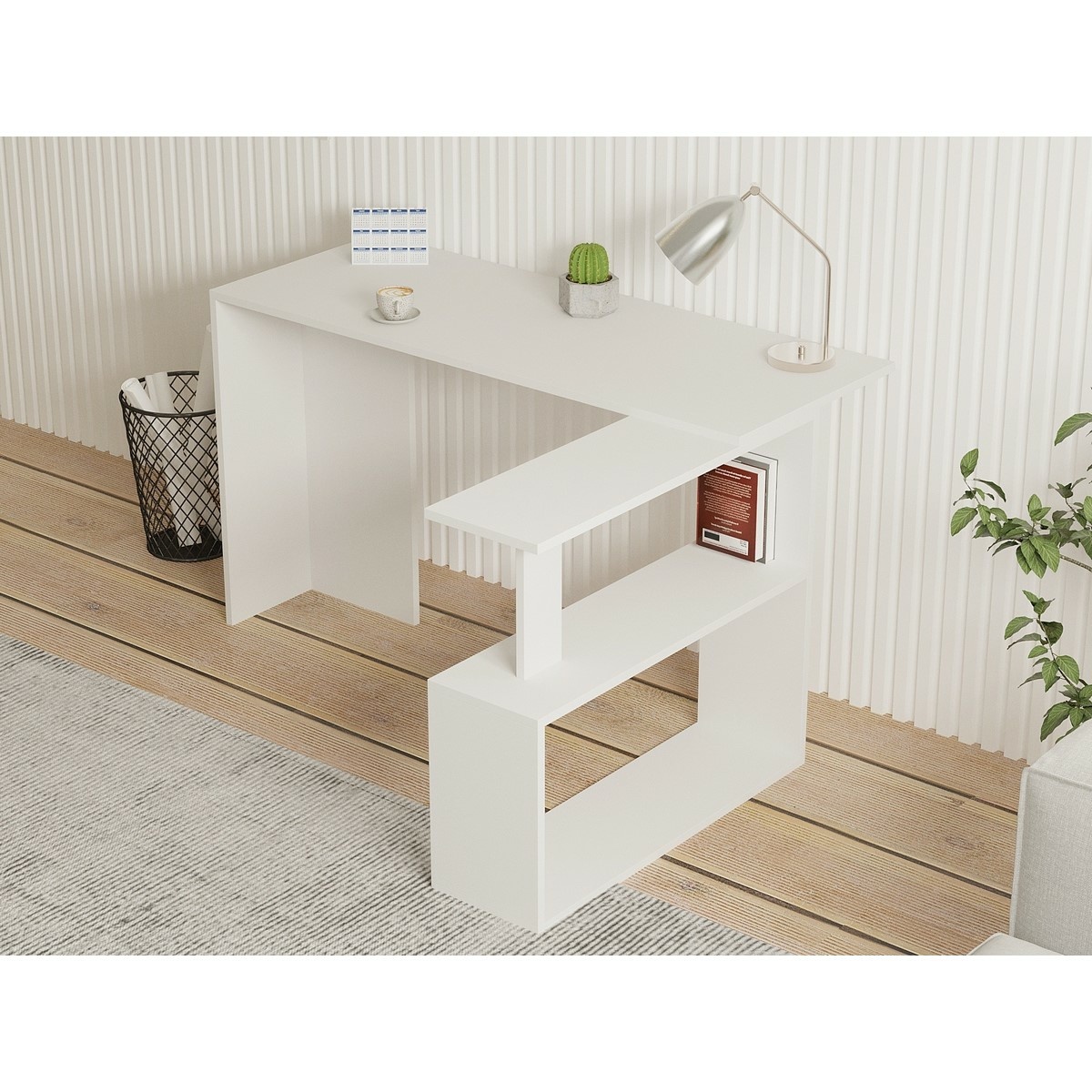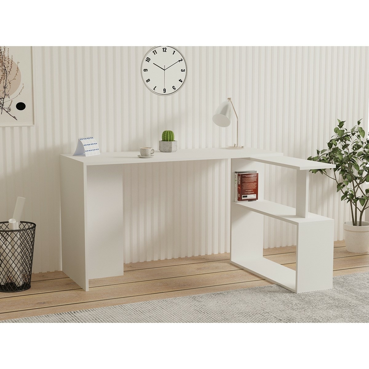Pracovní stůl Cayko White je praktický a moderní psací stůl v čistém bílém provedení, který nabízí jednoduchý design a promyšlené úložné řešení. Díky minimalistickému vzhledu se snadno začlení do studentských pokojů, domácích pracoven i kanceláří.Stůl je vyroben ze 100% melaminem potažené dřevotřískové desky s tloušťkou 18 mm, která zajišťuje pevnost, stabilitu a dlouhou životnost. Součástí je boční police, poskytující praktický prostor pro knihy, dokumenty nebo pracovní doplňky a pomáhající udržet pracovní plochu přehlednou a uklizenou.Ideální volba pro každého, kdo hledá funkční pracovní stůl s úložným prostorem a nadčasovým vzhledem.Parametry a specifikace: materiál: 100% melaminem potažená dřevotřísková deska tloušťka materiálu: 18 mm rozměry stolu: 130 × 73,8 × 50 cm (š × v × h) rozměry boční police: 104,1 × 73,8 × 24 cm (š × v × h) barva: bílá