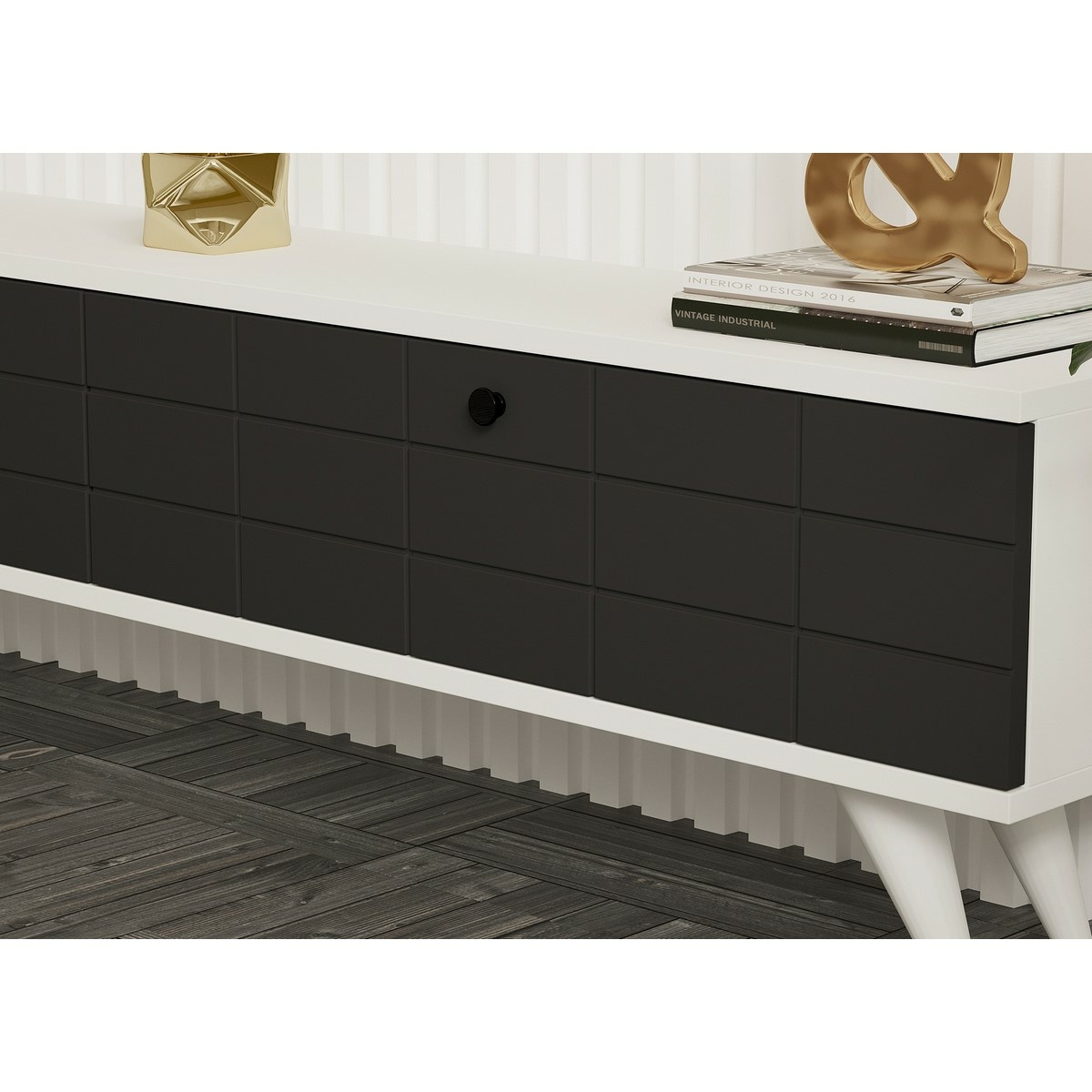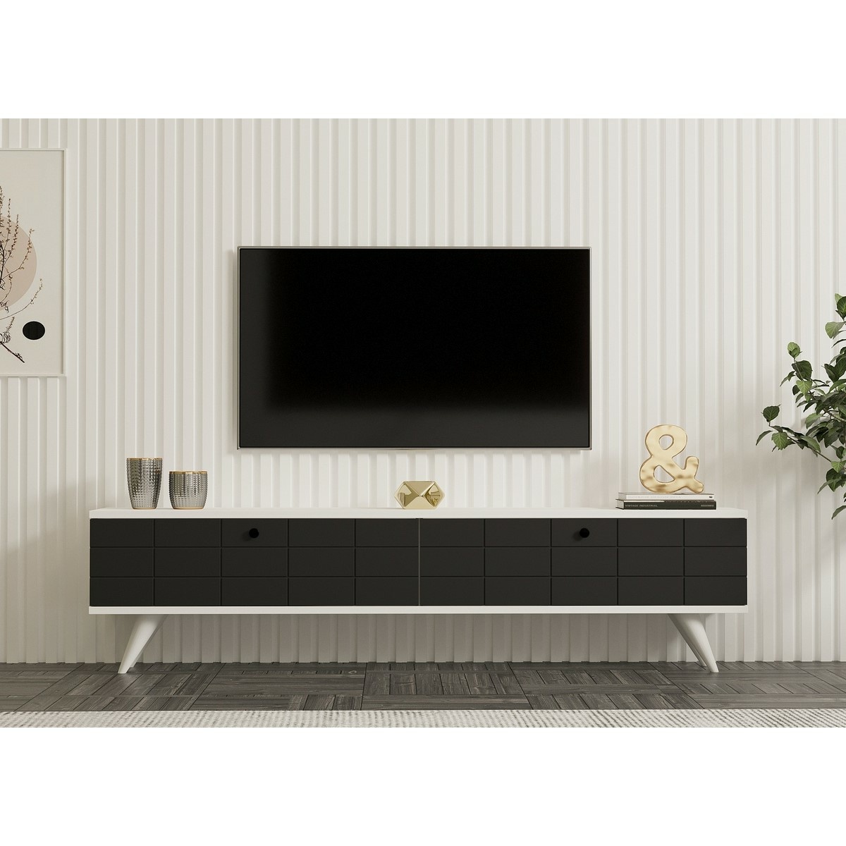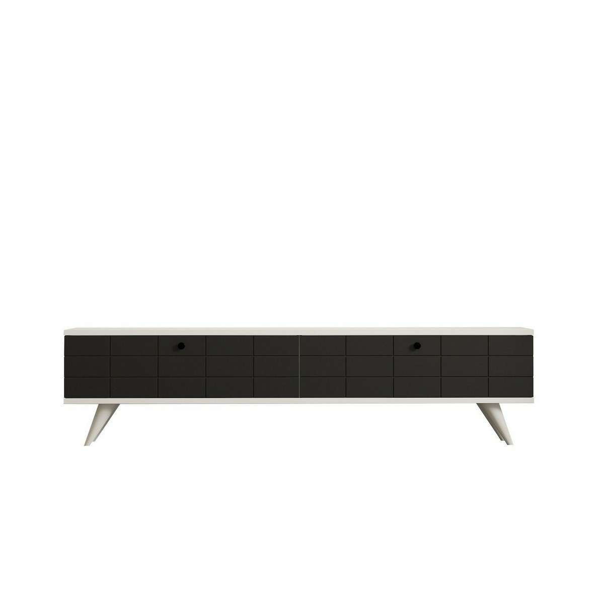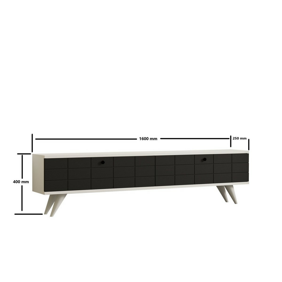 Televizní stolek Alberi White and Anthracite nabízí čistý moderní design a praktické provedení pro každý obývací pokoj. Kombinace bílé a antracitové barvy působí nadčasově a snadno se sladí s ostatním nábytkem.Stolek poskytuje dostatek úložného prostoru pro elektroniku, ovladače i doplňky a pomáhá udržet prostor přehledný. Je vyroben ze 100% melaminem potažené dřevotřísky o tloušťce 18 mm, doplněné o dvířka z masivního dřeva a plastové nožky pro stabilitu.Parametry a specifikace: materiál: 100% melaminem potažená dřevotříska tloušťka: 18 mm dvířka: masivní dřevo nožky: plastové šířka: 160 cm výška: 35 cm hloubka: 25 cm barva: bílá / antracitová