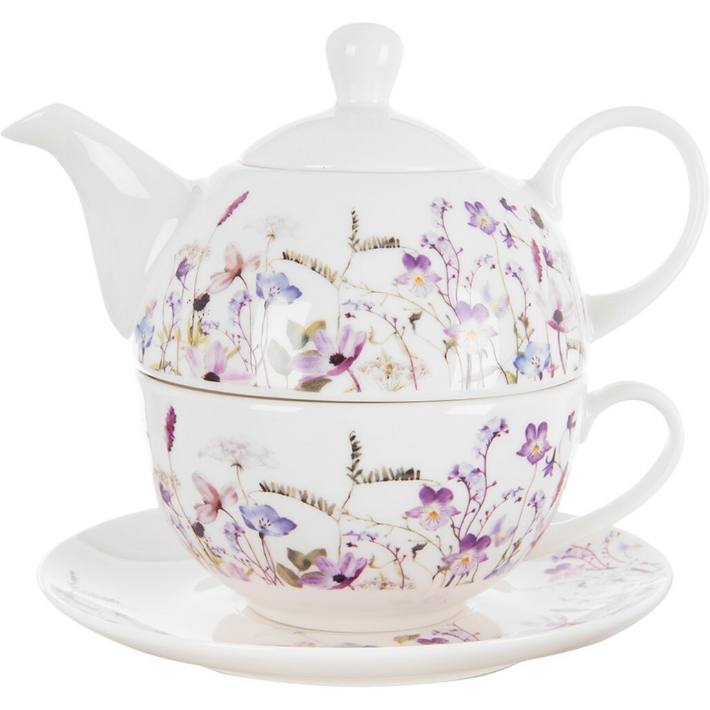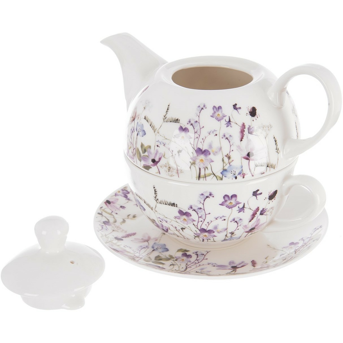 Porcelánová čajová souprava LOUKA od značky Orion vnese do chvíle odpočinku jemný dotek přírody a klidnou atmosféru. Bílý porcelán zdobí detailní motiv lučních květů ve fialových odstínech, který působí romanticky a velmi elegantně. Konvička, šálek i podšálek k sobě ladí a po sestavení do jednoho celku vytvářejí kompaktní čajovou soupravu ideální pro klidné posezení doma i na zahradě.Pevný a hladký porcelán je příjemný při používání a dobře drží teplotu nápoje. Konvička o objemu 400 ml má praktickou výlevku, pohodlné ucho a pevně usazené víčko, takže se snadno manipuluje a nalévání je plynulé. Šálek s objemem 280 ml doplňuje podšálek, který lze použít i samostatně například na sušenky či malý dezert. Jemný dekor lučních květů působí vzdušně a ladí s ostatními kousky kolekce Louka.Souprava je vhodná jak pro sypané, tak sáčkové čaje, bylinkové nálevy i další horké nápoje. Lze ji vložit do mikrovlnné trouby pro rychlý ohřev a mýt v myčce nádobí, což usnadňuje každodenní používání. Hlavní výhody produktu romantický dekor lučních květů v něžných fialových tónech kompletní čajová sada v jednom praktickém sestavení hladký a odolný porcelán vhodný pro každodenní používání možnost použití v mikrovlnné troubě i myčce nádobí ideální velikost pro přípravu jednoho šálku čajeObsah balení 1× konvička 400 ml 1× šálek 280 ml 1× podšálekRozměry průměr konvičky: 10,7 cm výška konvičky: 11 cm objem konvička: 400 ml průměr šálku: 10,7 cm výška šálku: 5,7 cm objem šálku: 280 ml průměr podšálku: 15,2 cm celková výška s pokličkou: 14 cm