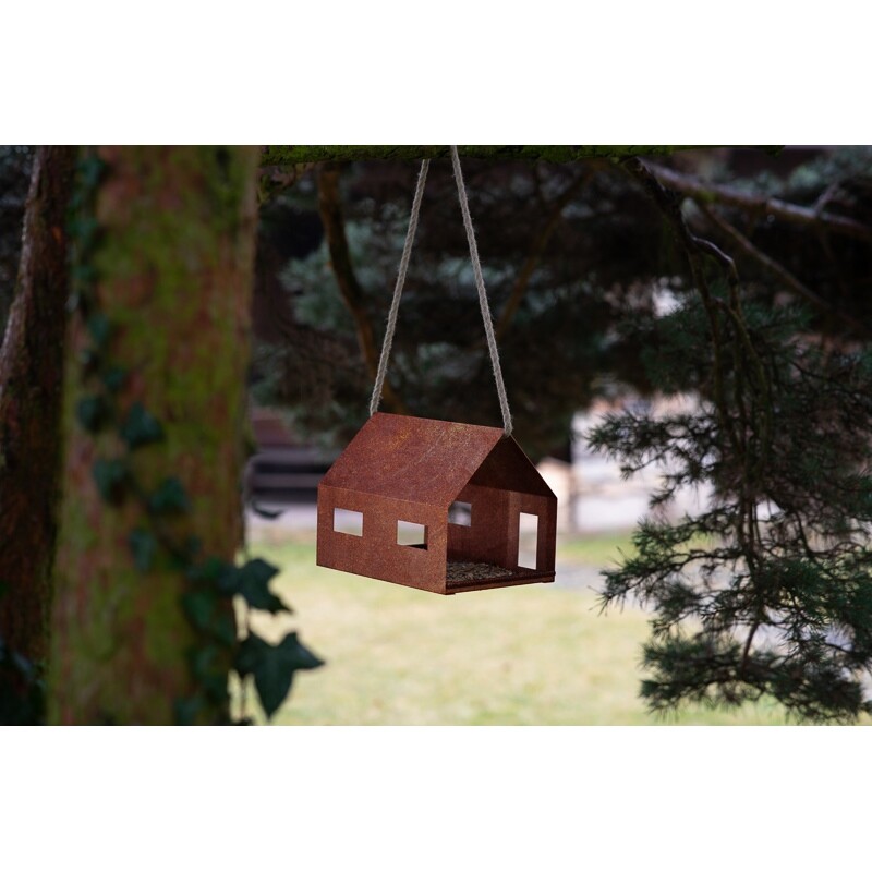 Ptačí krmítko také jako závěsné krmítko pro ptáky či krmítko pro drobné pěvce, spojuje čisté linie domečku se sedlovou střechou s přívětivým prostorem pro krmení. Dvě jemná okénka na jedné straně, jedno okno a symbolická dvířka na druhé straně doplňují otevřené čelní plochy pro snadný přílet i odlet. Tělo z vysoce odolné švédské oceli COR-TEN® časem získává přirozenou patinu, která chrání materiál a ladí s prostředím zahrady. V balení je závěsné lano, pro samostatně stojící řešení lze krmítko upevnit na volitelný kovový stojan.Hlavní výhody ptačího krmítka: nadčasový, střídmý design ve tvaru domečku se sedlovou střechou bezpečné krmení s otevřeným přístupem z více stran možnost zavěšení na lano nebo montáže na volitelný stojan cortenová ocel s přirozenou patinou je bezúdržbová odolné provedení z kvalitní švédské COR-TEN® oceli ekologické řešení – 100% recyklovatelný kov funkční i dekorativní prvek oblíbený u dětí i dospělých Parametry ptačího krmítka: materiál: COR-TEN® ocel šířka: 30 cm hloubka: 21 cm výška: 23 cm tloušťka materiálu: 1 mm hmotnost: 2 kg uchycení: lano pro zavěšení, součást balení povrch/barva: přírodní patina COR-TEN® záruka: 24 měsíců výrobce: Corgarden s.r.o. Obsah balení ptačího krmítka: ptačí krmítko CASA z cortenové oceli odolné závěsné lano návod k použití a doporučení k instalaci součástí balení není kovový stojan (lze dokoupit zvlášť)Oblast použití ptačího krmítka: zahrady rodinných domů a přírodní zahrady terasy, pergoly, přístřešky a venkovní posezení parky, veřejná zeleň a komunitní prostory dvorky, školní zahrady a naučné koutky farmářské a venkovské areály Materiál COR-TEN®:COR-TEN® je speciální legovaná ocel vyvinutá pro extrémní venkovní podmínky. Vytváří na svém povrchu přirozenou ochrannou patinu – tenkou vrstvu rzi, která zamezuje další korozi.Patina vzniká působením vlhkosti a střídání sucha. Postupem času se stabilizuje a vytvoří pevný, odolný povrch. Není potřeba žádné natírání ani jiná údržba. Ocel je díky tomu extrémně trvanlivá a zcela bezúdržbová.Jak se COR-TEN® mění v čase?Po rozbalení má materiál většinou světlý kovový vzhled, ale může nést drobné stopy výroby nebo počínající oxidace. Tyto vizuální znaky však během přirozeného procesu patinování postupně zmizí.0–2 týdny Ocel začíná tmavnout, objevují se první známky oxidace.2–10 týdnů Rychlý vývoj rzi – zlatavě rezavá barva, často s barevnými přechody.2–12 měsíců Povrch se stabilizuje do hlubšího, sytě hnědo-oranžového tónu.>12 měsíců Patina je zralá, neprášivá a odolná – dál se již téměř nemění.Rychlost oxidace závisí na umístění. Ve stínu nebo pod střechou probíhá pomaleji než na slunci a dešti.Důležité upozorněníV počáteční fázi může COR-TEN® uvolňovat rezavě zbarvenou vodu, která zanechává skvrny. Doporučujeme proto umístit stojan s krmítkem na místo, kde to nebude vadit.Nejedná se o hračku. Při manipulaci doporučujeme používat ochranné rukavice – hrany mohou být ostré.Na některých výrobcích mohou být po rozbalení stopy po výrobě nebo již může probíhat patinace. Tato skutečnost není důvodem k reklamaci.