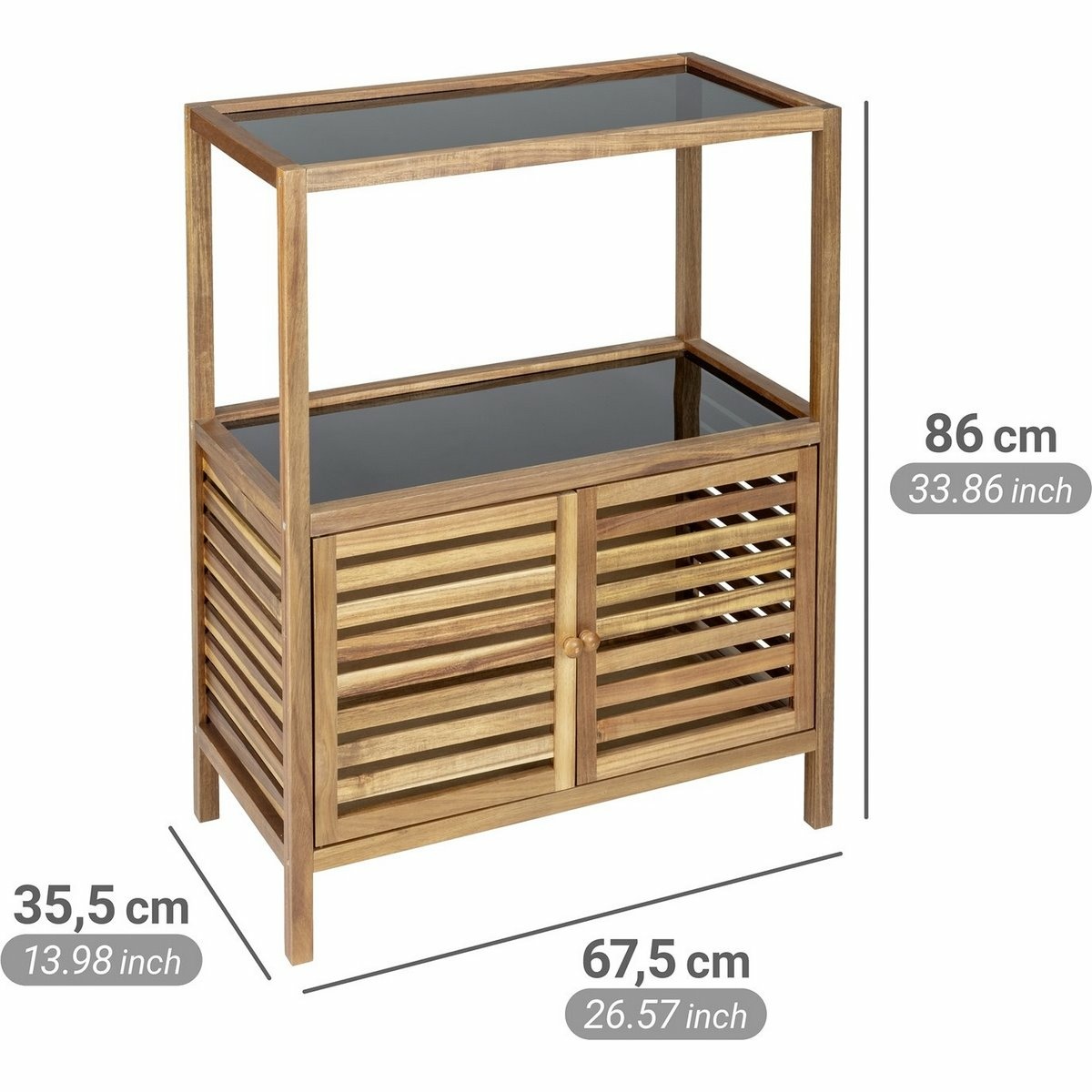 Široký koupelnový regál s dvířky FONDI od značky Wenko je praktickým úložným řešením, které spojuje přirozený vzhled masivního dřeva s čistými liniemi moderního designu. Díky širšímu provedení nabízí dostatek prostoru pro přehledné uspořádání koupelnových potřeb, aniž by působil těžkopádně. Regál se hodí nejen do koupelny, ale také do ložnice, chodby nebo obývací části, kde poslouží jako elegantní úložný nábytek. Konstrukce z masivního akáciového dřeva vyniká pevností, dlouhou životností a výraznou kresbou, která dodává interiéru příjemně hřejivý charakter. Horní otevřená část s policemi zbezpečnostního skla je ideální pro věci, které chcete mít po ruce nebo vystavené, zatímco spodní skříňka se dvěma dvířky poskytuje diskrétní úložný prostor pro ručníky, kosmetiku nebo další doplňky. Každá police má nosnost až 10 kg. Celek působí vyváženě a vzdušně, přesto nabízí velkou kapacitu. Regál je navržen s ohledem na každodenní používání. Díky promyšleným rozměrům se snadno začlení i do menších místností, přitom nabídne výrazně více úložného prostoru než užší varianty. Hladké povrchy se snadno udržují a použití kvalitních materiálů zajišťuje stabilitu i při dlouhodobém zatížení. Model patří do ucelené série FONDI, která umožňuje sladit více kusů nábytku do jednotného stylu. Regál je vhodný pro domácnosti, které hledají kombinaci funkčnosti, přírodního vzhledu a nadčasového designu. Hlavní výhody produktu široké provedení s velkou úložnou kapacitou masivní akáciové dřevo s přirozenou kresbou kombinace otevřených polic a uzavíratelné skříňky police z bezpečnostního skla, nosnost až 10 kg vhodný do koupelny i dalších obytných prostor součást designové série Fondi Obsah balení 1× koupelnový regál s dvířky