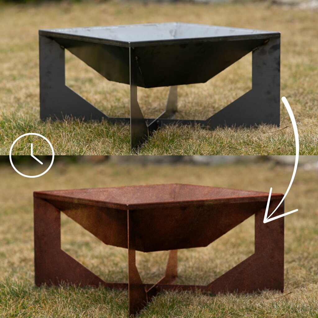 Zahradní ohniště přináší příjemnou atmosféru otevřeného ohně v odolném a nadčasovém provedení. Je vyrobeno z originální švédské oceli COR-TEN®, která v exteriéru vytváří přirozenou patinu a nevyžaduje nátěr ani zvláštní údržbu. Svařovaná konstrukce ze čtyř bočnic s vyztuženým horním lemem a dnem stojí na ocelových nohách, které snižují přenos tepla směrem dolů.V ohništi lze bezpečně pálit dřevo i bez roštu; pro grilování je možné dokoupit ocelovou plotnu nebo nerezový rošt.Hlavní výhody zahradního ohniště: nadčasový vzhled s přirozenou patinou COR-TEN® bezúdržbový provoz bez nátěrů a chemického ošetření odolnost vůči povětrnostním vlivům dlouhá životnost a možnost celoročního používání ekologické řešení – 100% recyklovatelný materiál snadná manipulace a přemístění Parametry zahradního ohniště: materiál: COR-TEN® ocel rozměry: 50 × 50 × 30 cm tloušťka materiálu: 2 mm hmotnost: 9,5 kg barva/povrch: přírodní patina COR-TEN® konstrukce: svařovaná z 4 bočnic s vyztuženým horním lemem a dnem nohy: ocelové, pro „levitující“ efekt a omezení přenosu tepla dolů provoz: bezpečné pálení dřeva bez roštu; volitelné příslušenství pro grilování (ocelová plotna / nerezový rošt) záruka: 24 měsíců výrobce: Corgarden s.r.o. Obsah balení zahradního ohniště: plechové ohniště Vento návod k použití součástí balení není víko (lze dokoupit zvlášť) Oblast použití zahradního ohniště: zahrady a dvory rodinných domů přírodní a komunitní zahrady městské parky a veřejná zeleň (tam, kde je to povoleno) firemní a komerční areály Materiál COR-TEN®:COR-TEN® je speciální legovaná ocel vyvinutá pro extrémní venkovní podmínky. Vytváří na svém povrchu přirozenou ochrannou patinu – tenkou vrstvu rzi, která zamezuje další korozi.Patina vzniká působením vlhkosti a střídání sucha. Postupem času se stabilizuje a vytvoří pevný, odolný povrch. Není potřeba žádné natírání ani jiná údržba. Ocel je díky tomu extrémně trvanlivá a zcela bezúdržbová.Jak se COR-TEN® mění v čase?Po rozbalení má materiál většinou světlý kovový vzhled, ale může nést drobné stopy výroby nebo počínající oxidace. Tyto vizuální znaky však během přirozeného procesu patinování postupně zmizí.0–2 týdny Ocel začíná tmavnout, objevují se první známky oxidace.2–10 týdnů Rychlý vývoj rzi – zlatavě rezavá barva, často s barevnými přechody.2–12 měsíců Povrch se stabilizuje do hlubšího, sytě hnědo-oranžového tónu.>12 měsíců Patina je zralá, neprášivá a odolná – dál se již téměř nemění.Rychlost oxidace závisí na umístění. Ve stínu nebo pod střechou probíhá pomaleji než na slunci a dešti.Důležité upozorněníV počáteční fázi může COR-TEN® uvolňovat rezavě zbarvenou vodu, která zanechává skvrny. Doporučujeme proto umístit ohniště na povrch, kde to nebude vadit – např. hlína, tráva, štěrk nebo jiný přírodní povrch.Na některých výrobcích mohou být po rozbalení stopy po výrobě nebo již může probíhat patinace. Tato skutečnost není důvodem k reklamaci.